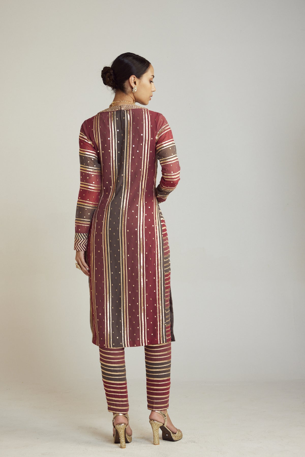 Straight multi color hand embroidered kurta clubbed with a gota pant set.