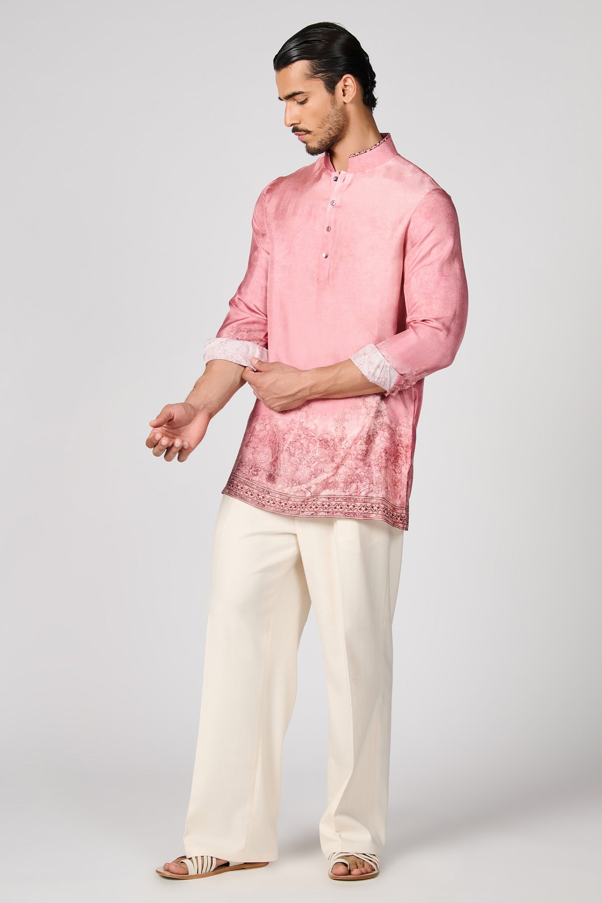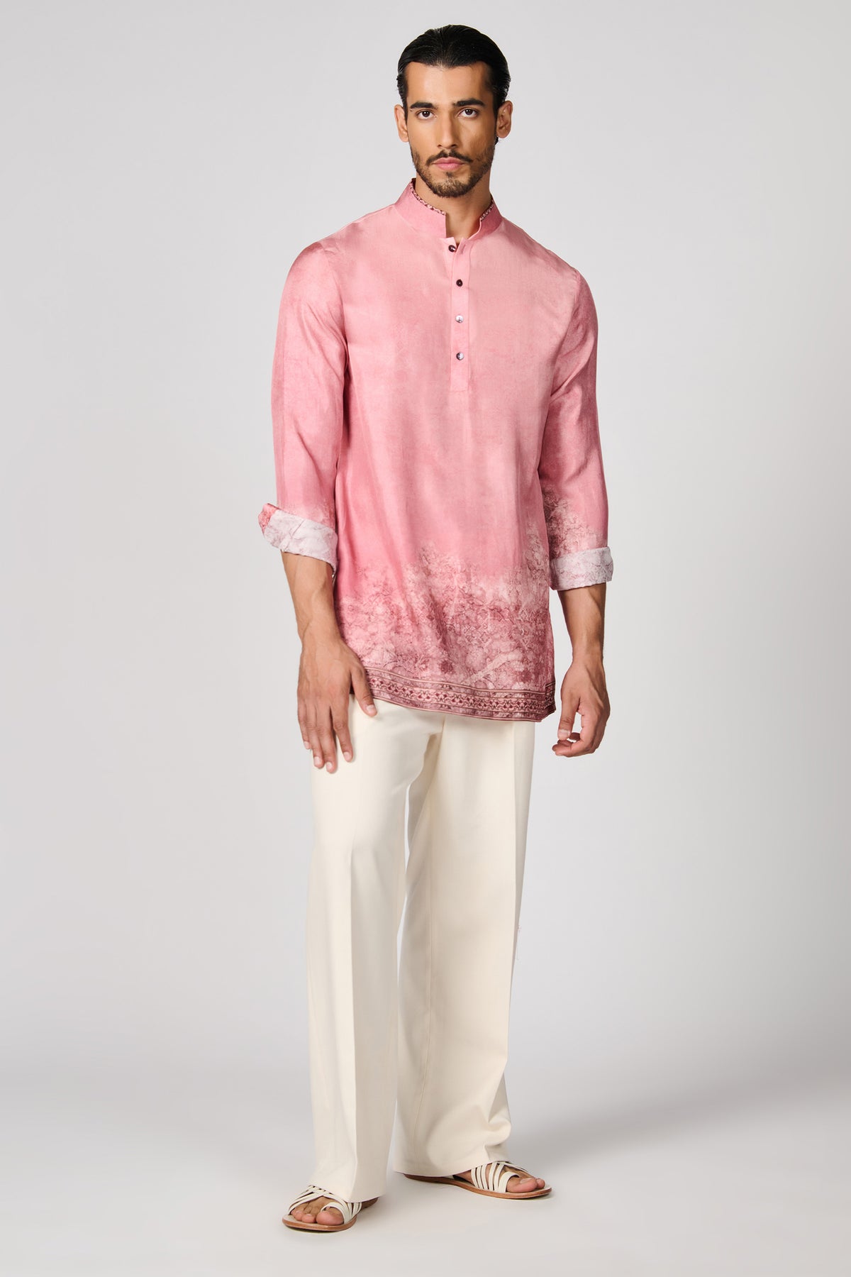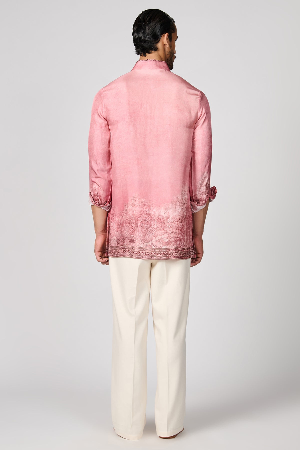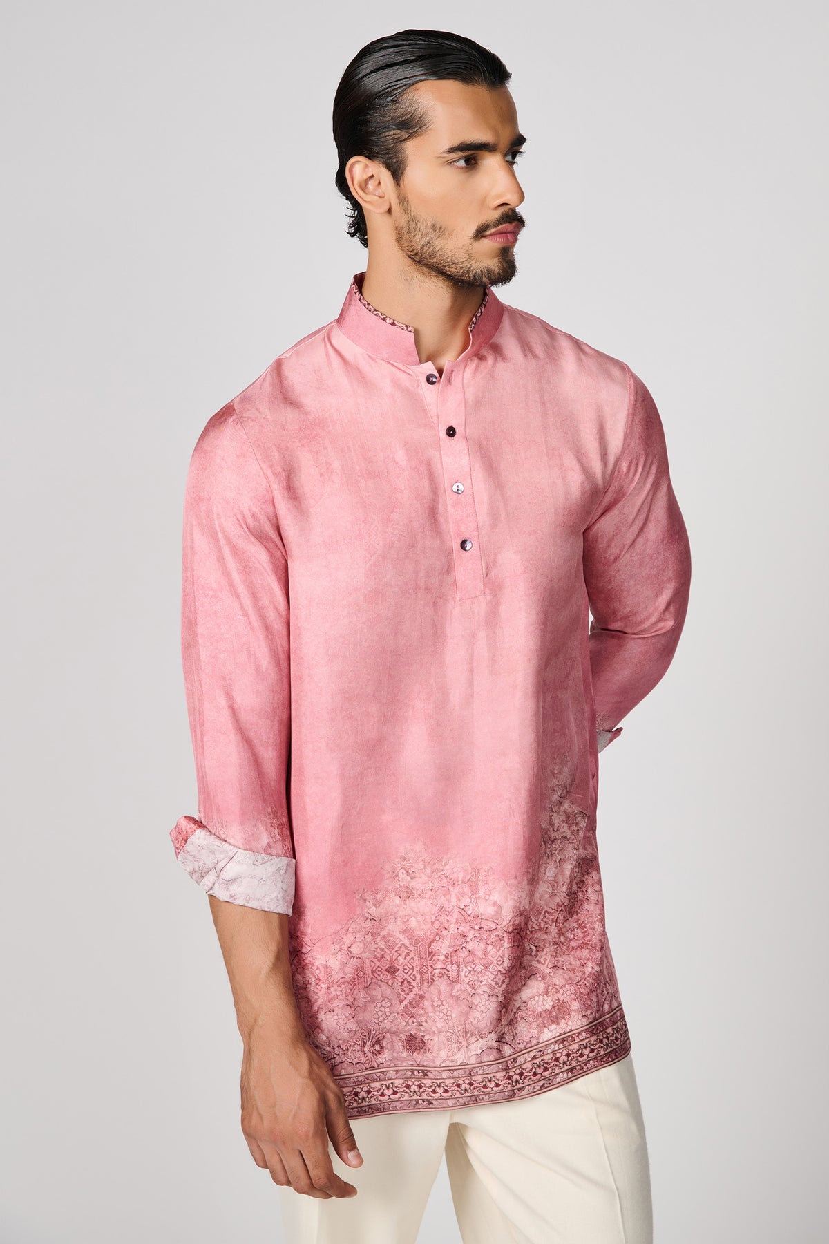 Shantanu & Nikhil Menswear Sicilian Placement Print Silk Kurta indian designer wear online shopping melange singapore