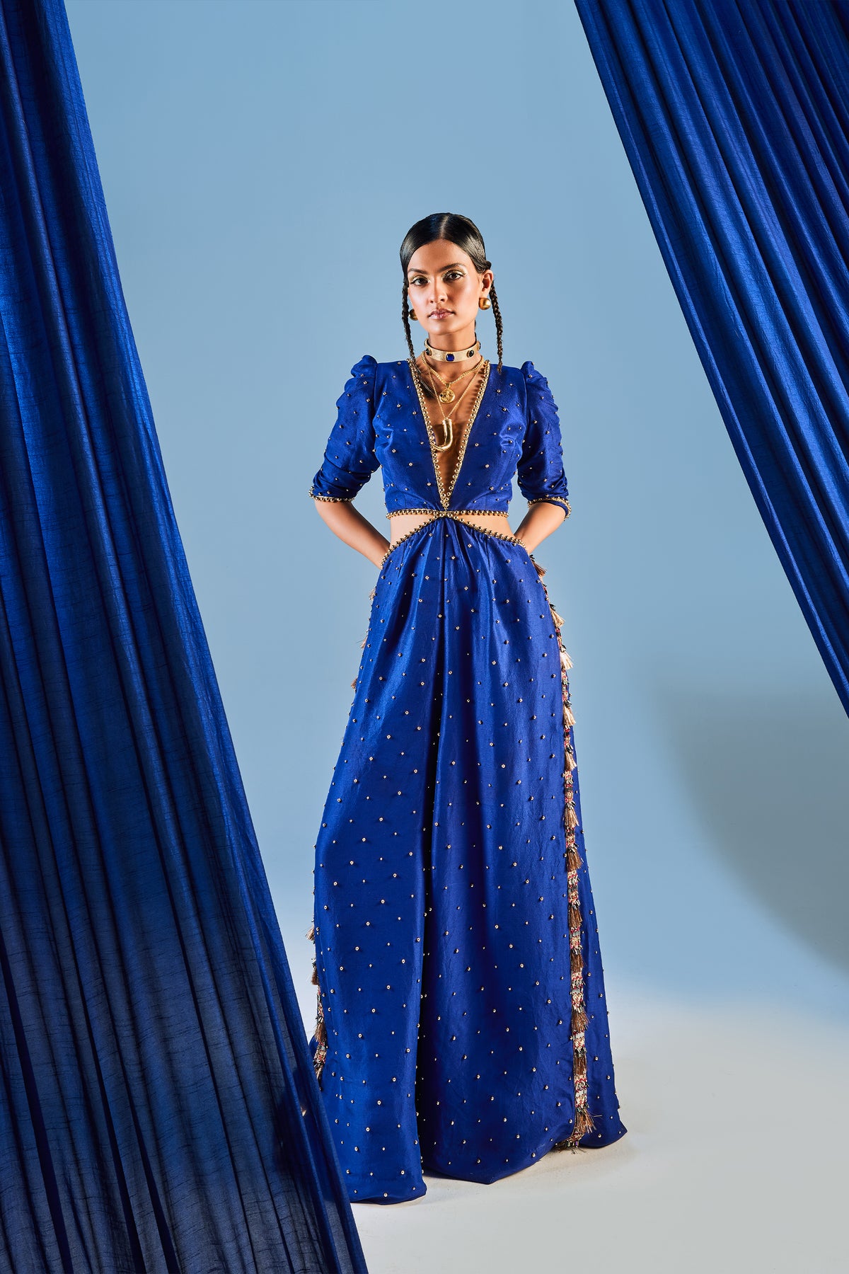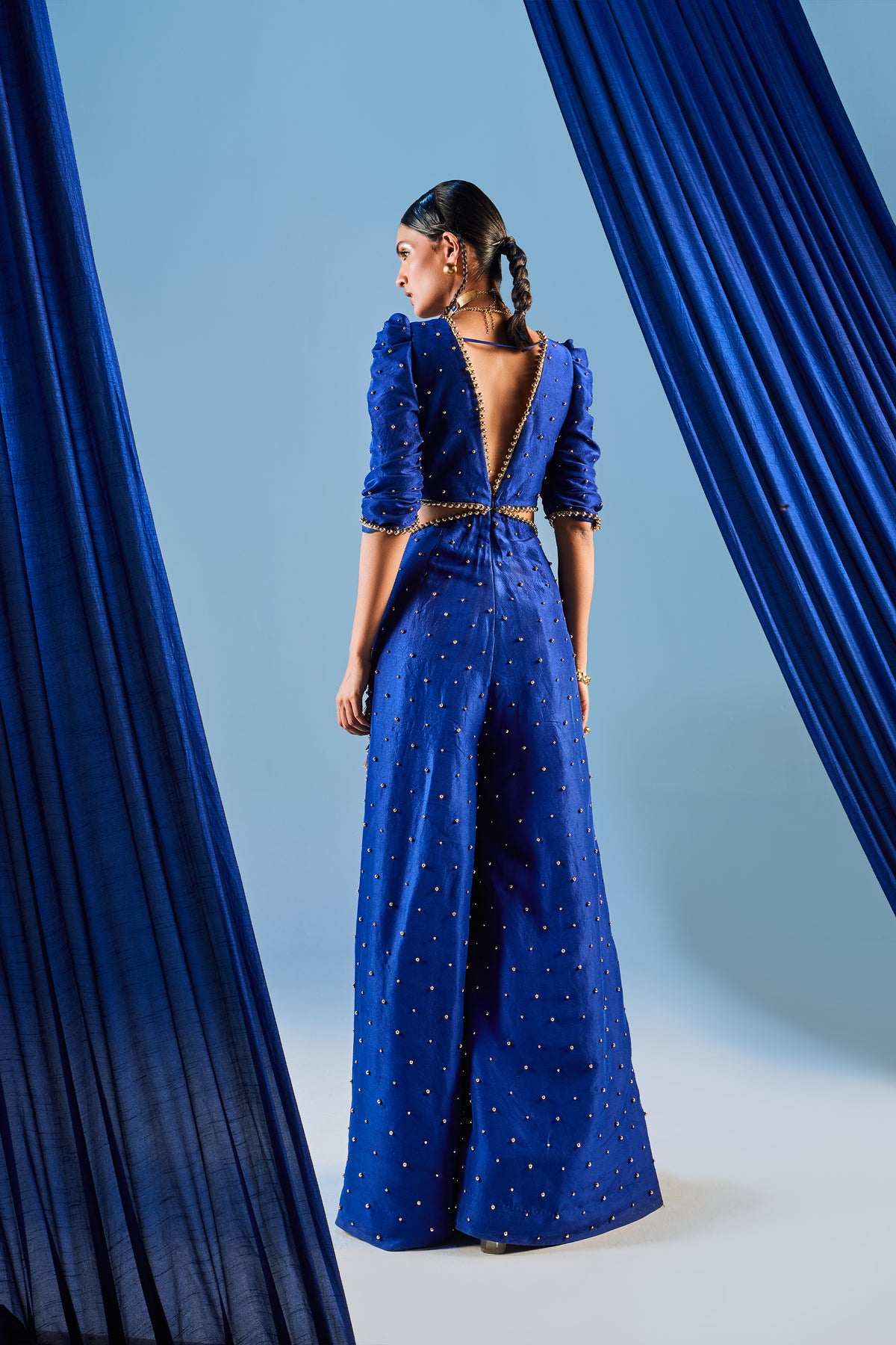 Maison Blu Electric Blue Cut Out Jumpsuit indian designer wear online shopping melange singapore