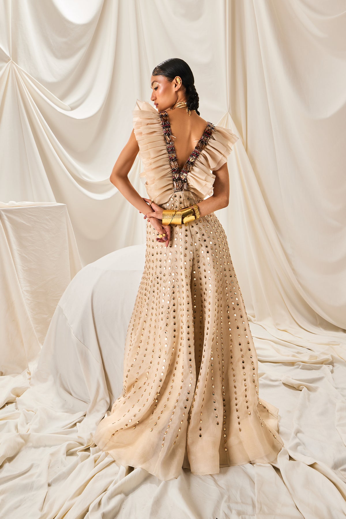 Maison Blu Ivory Fully Embelished Ruffle Jumpsuit indian designer wear online shopping melange singapore