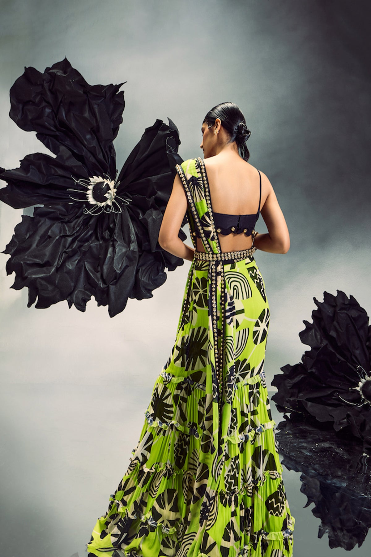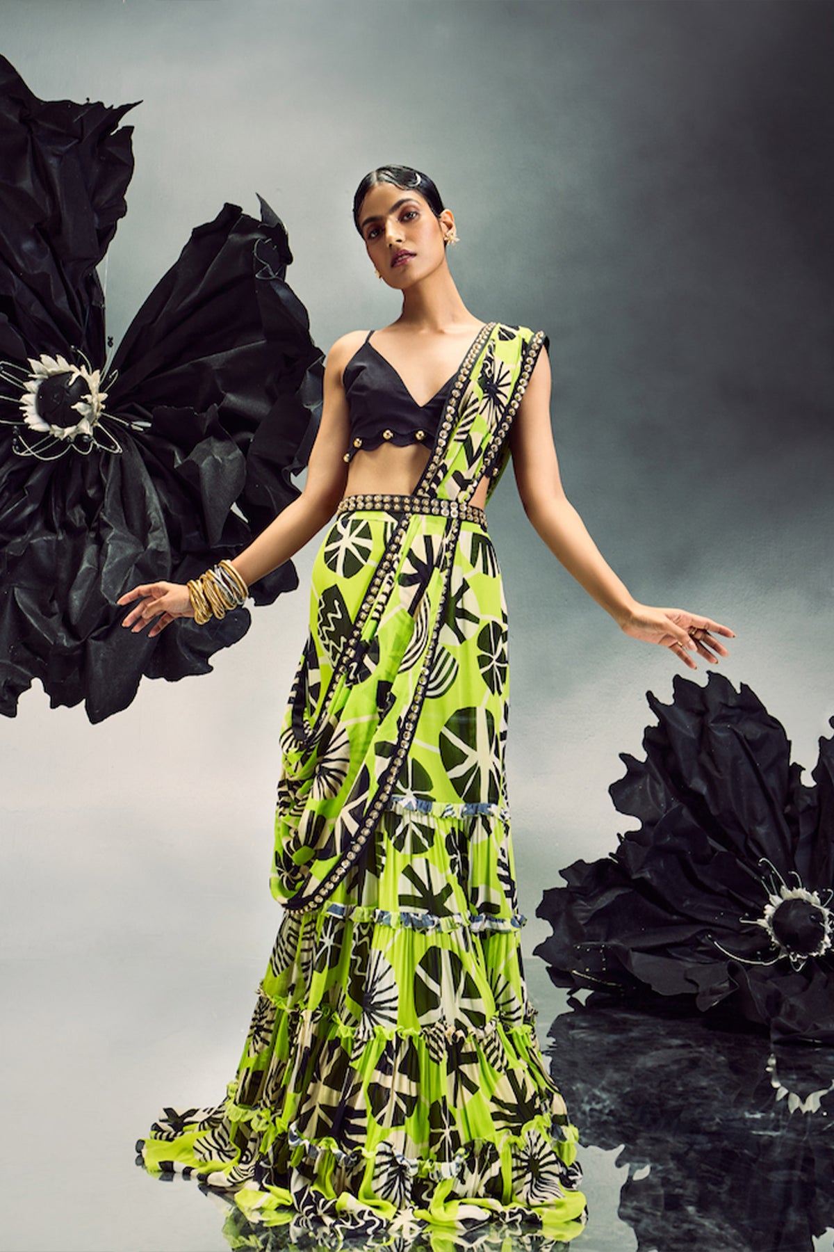 Maison Blu Tier Pre- Draped Saree With Studded Bustier indian designer wear online shopping melange singapore