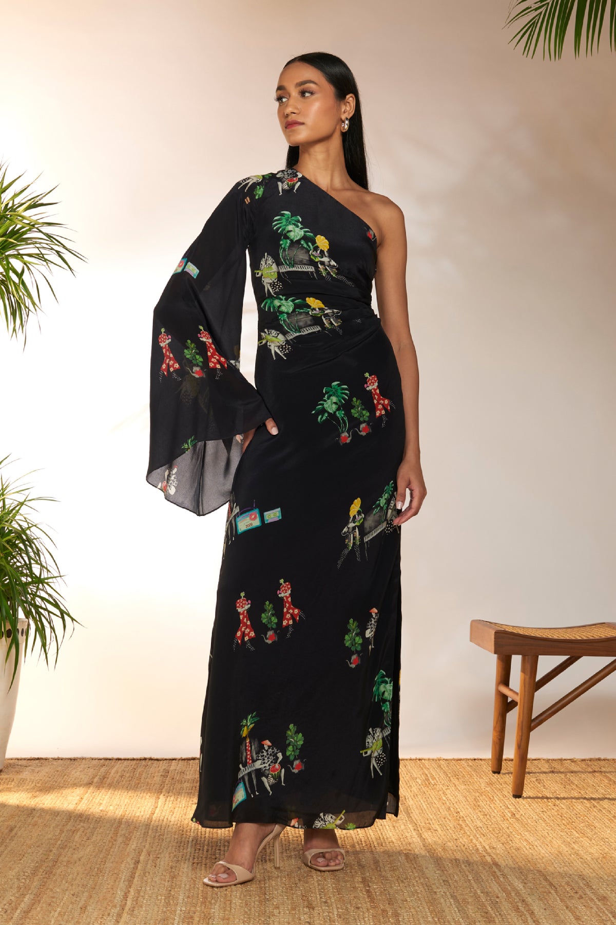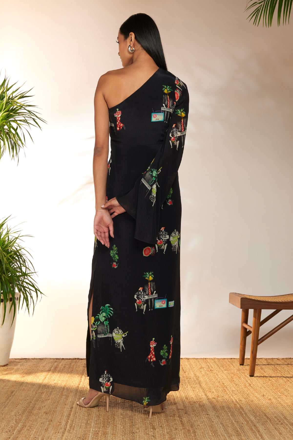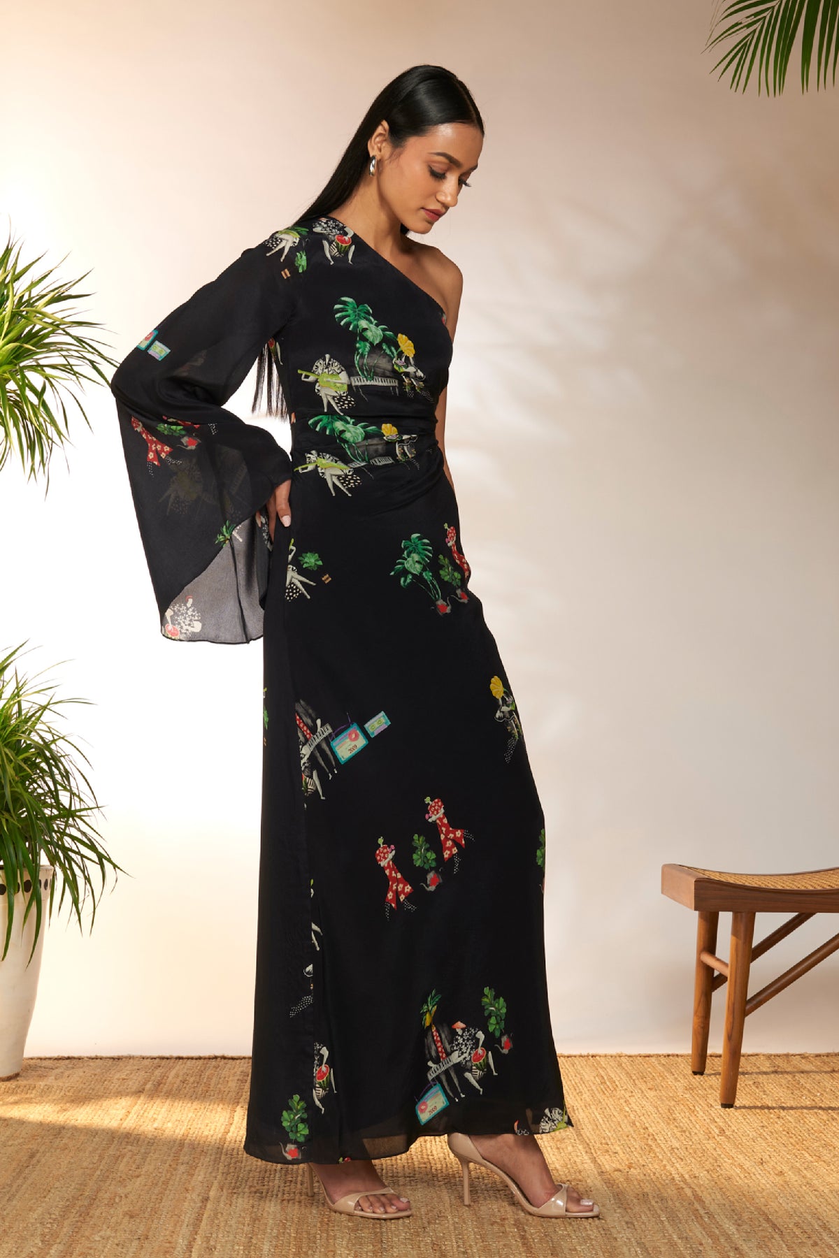 Masaba Black Tropical One Shoulder Dress indian designer wear online shopping melange singapore