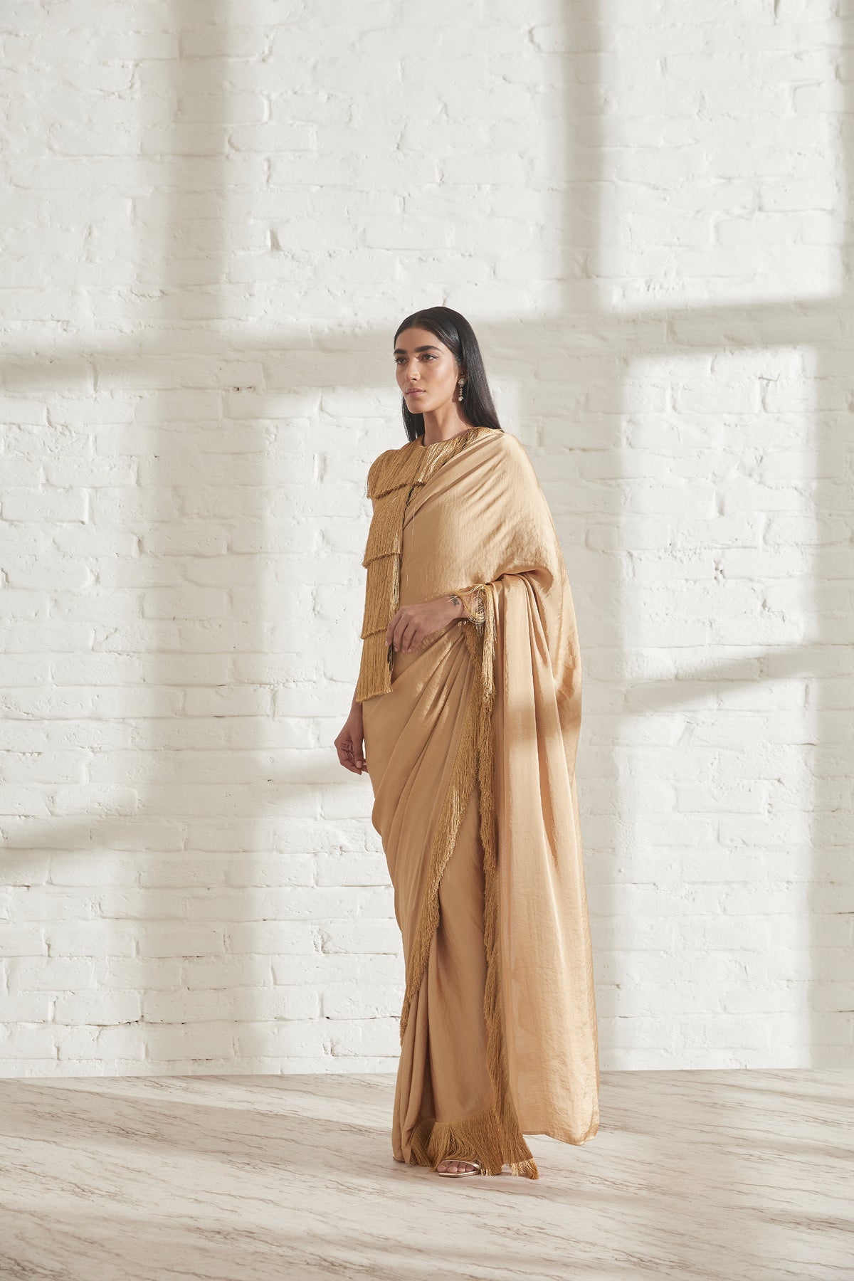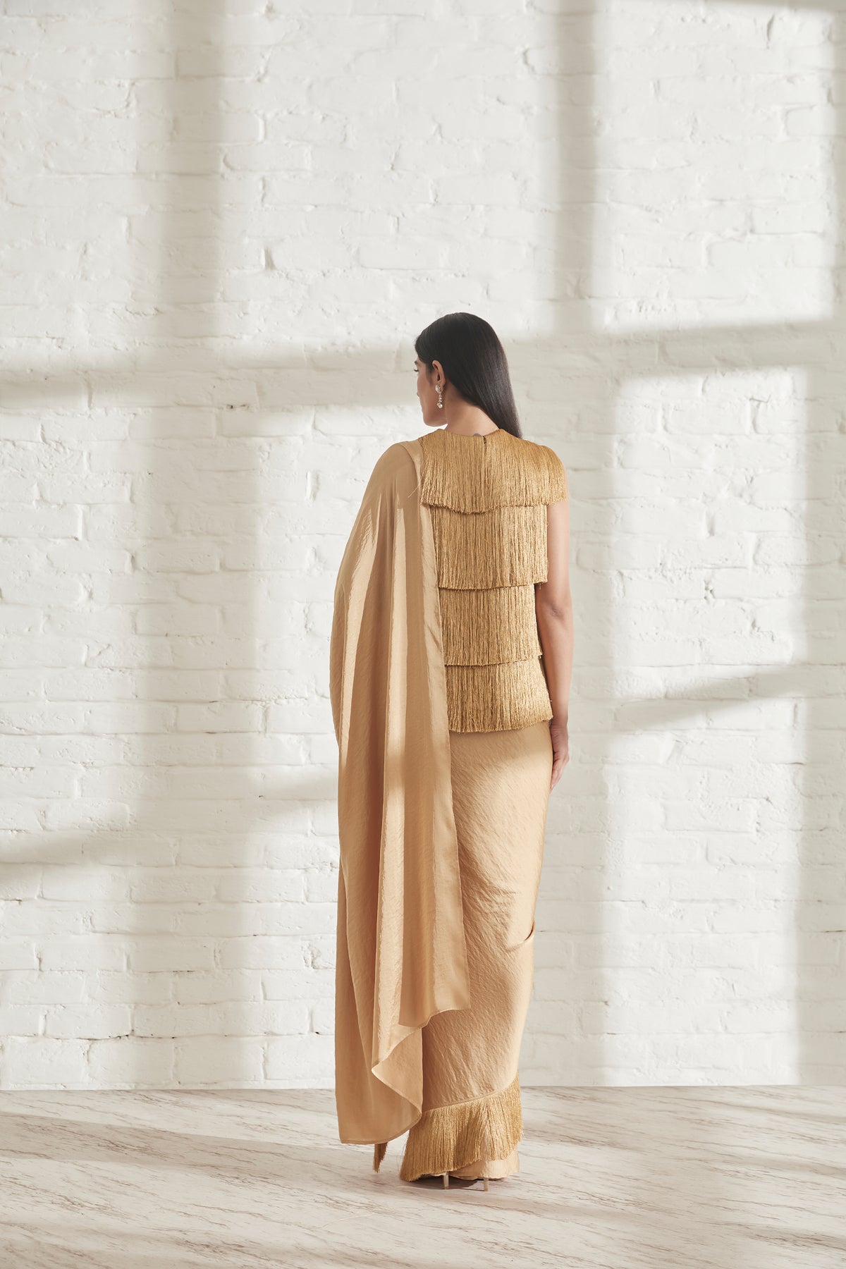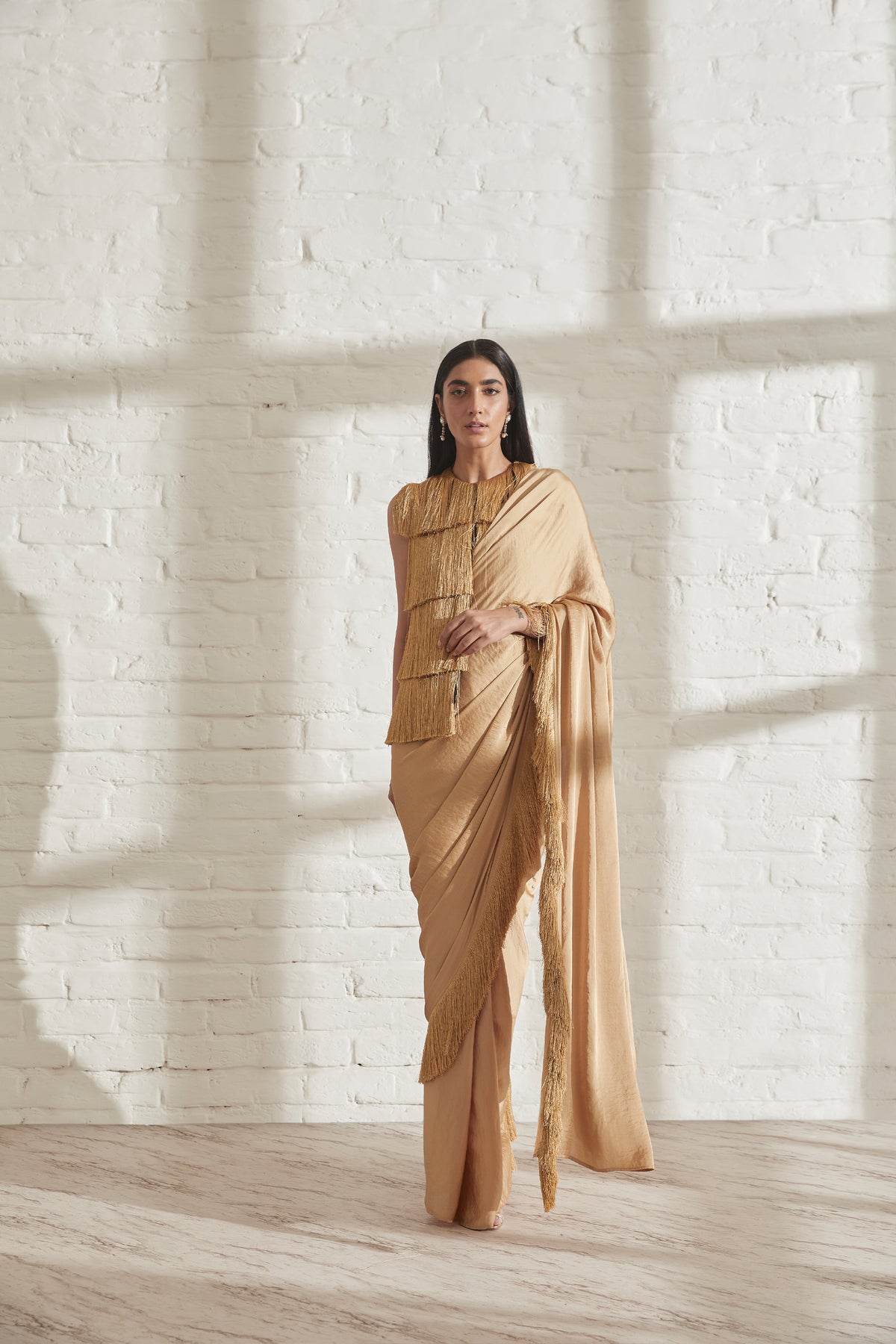 Noor Fringe Sari With Sleeveless Fringe Jacket
