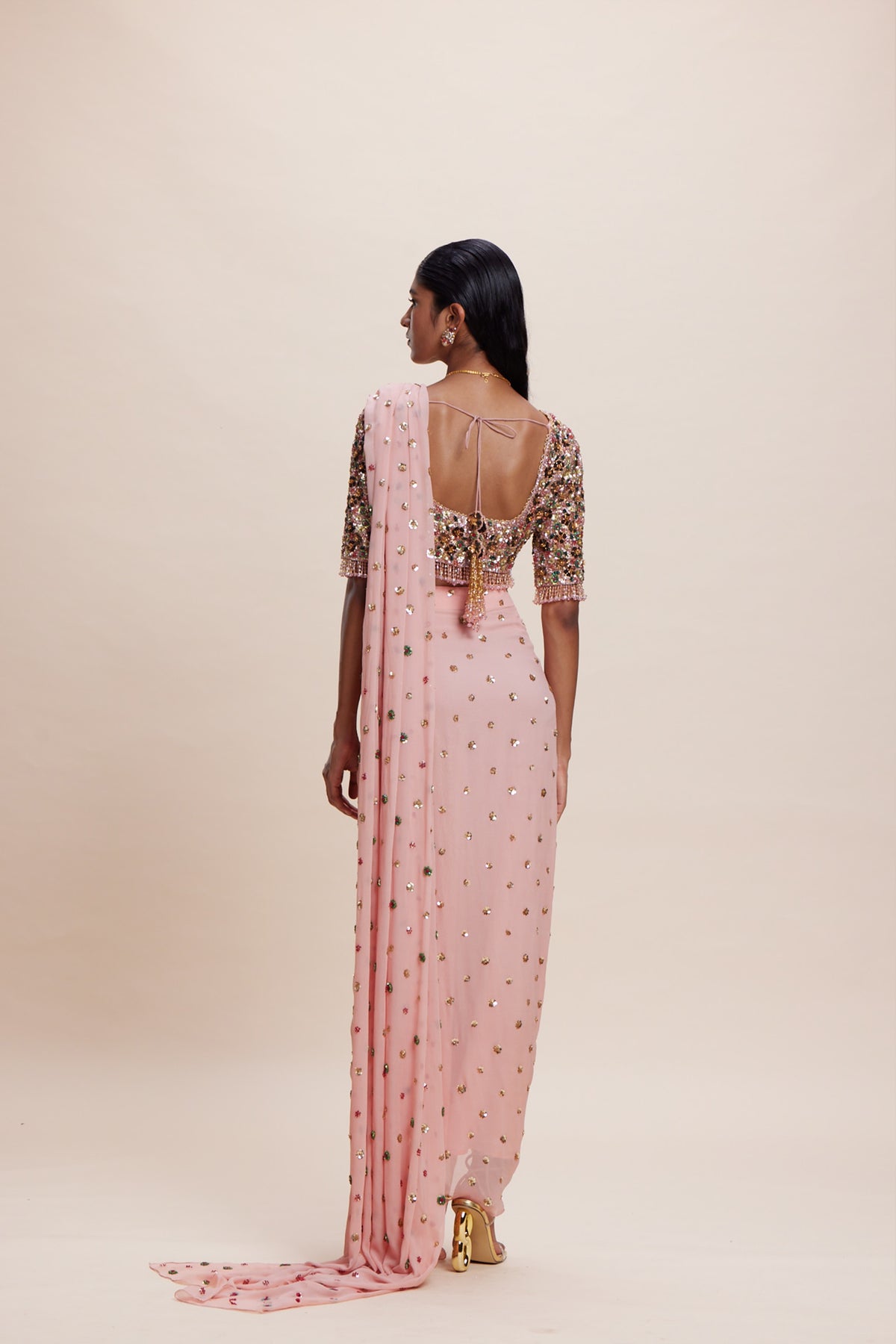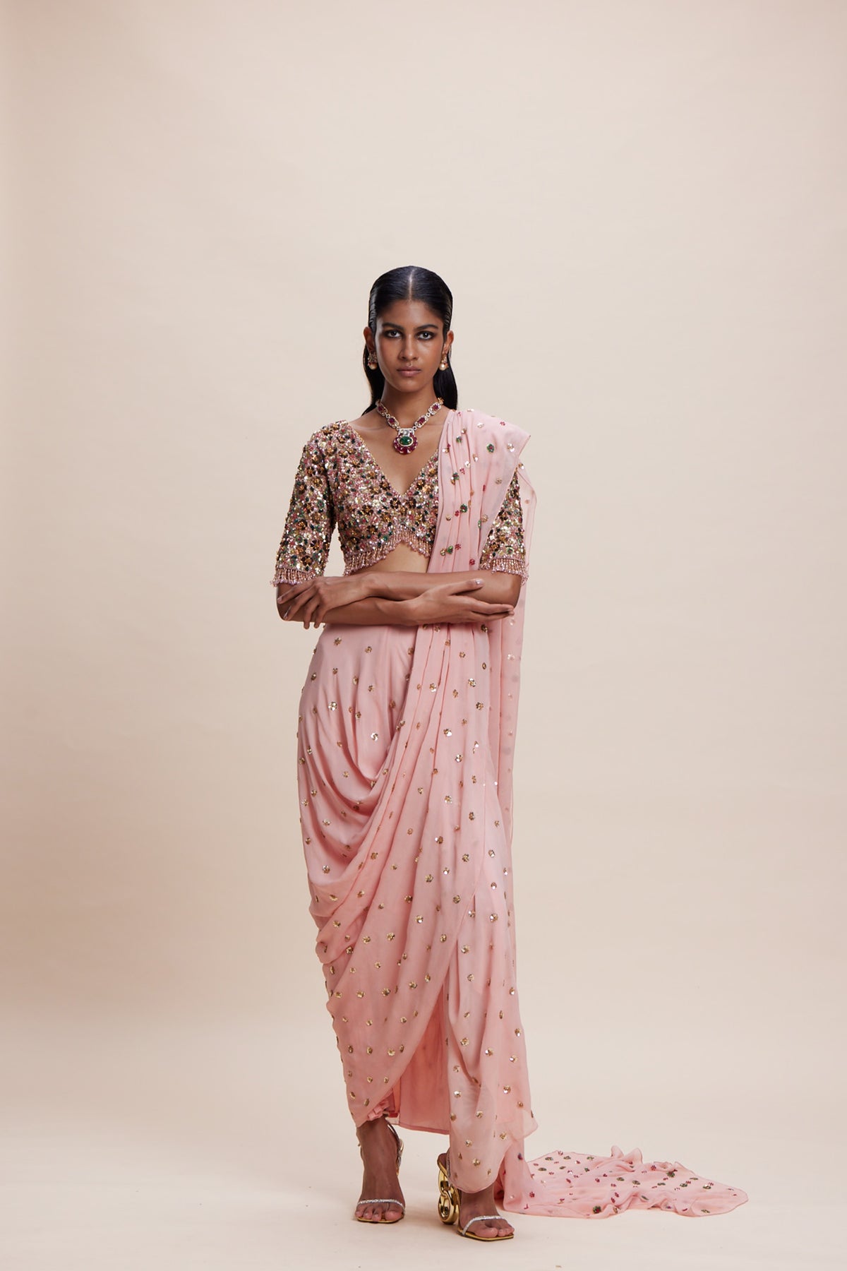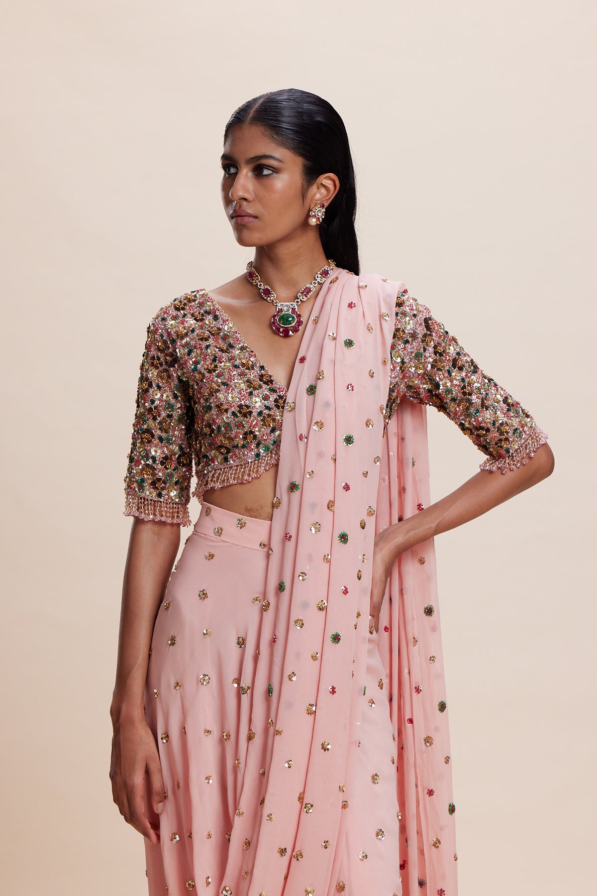 Kangana Trehan Pink Drape Saree indian designer wear online shopping melange singapore