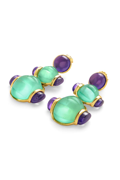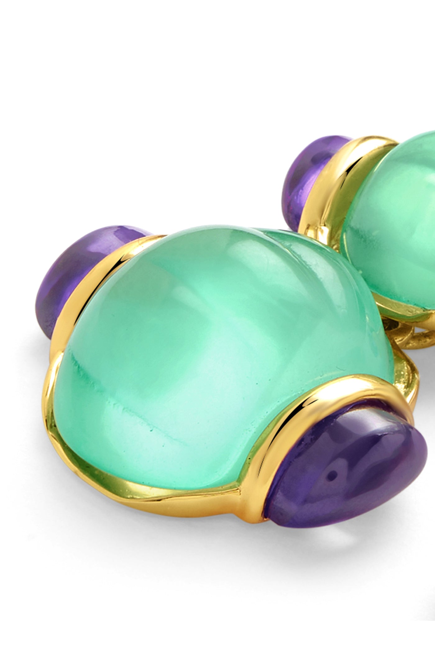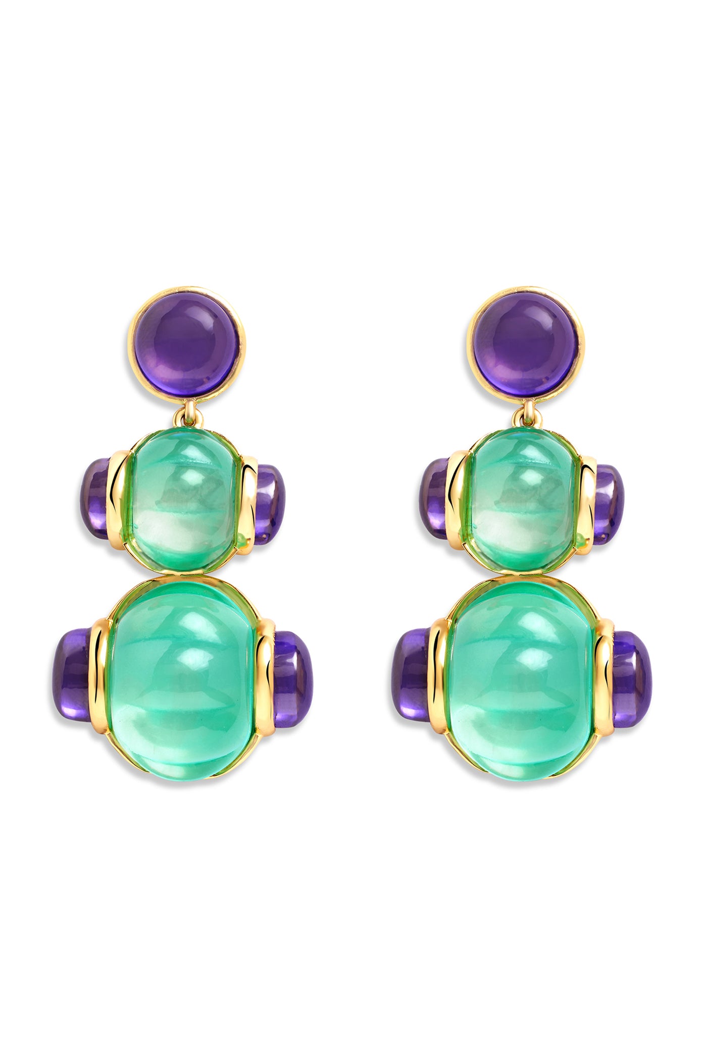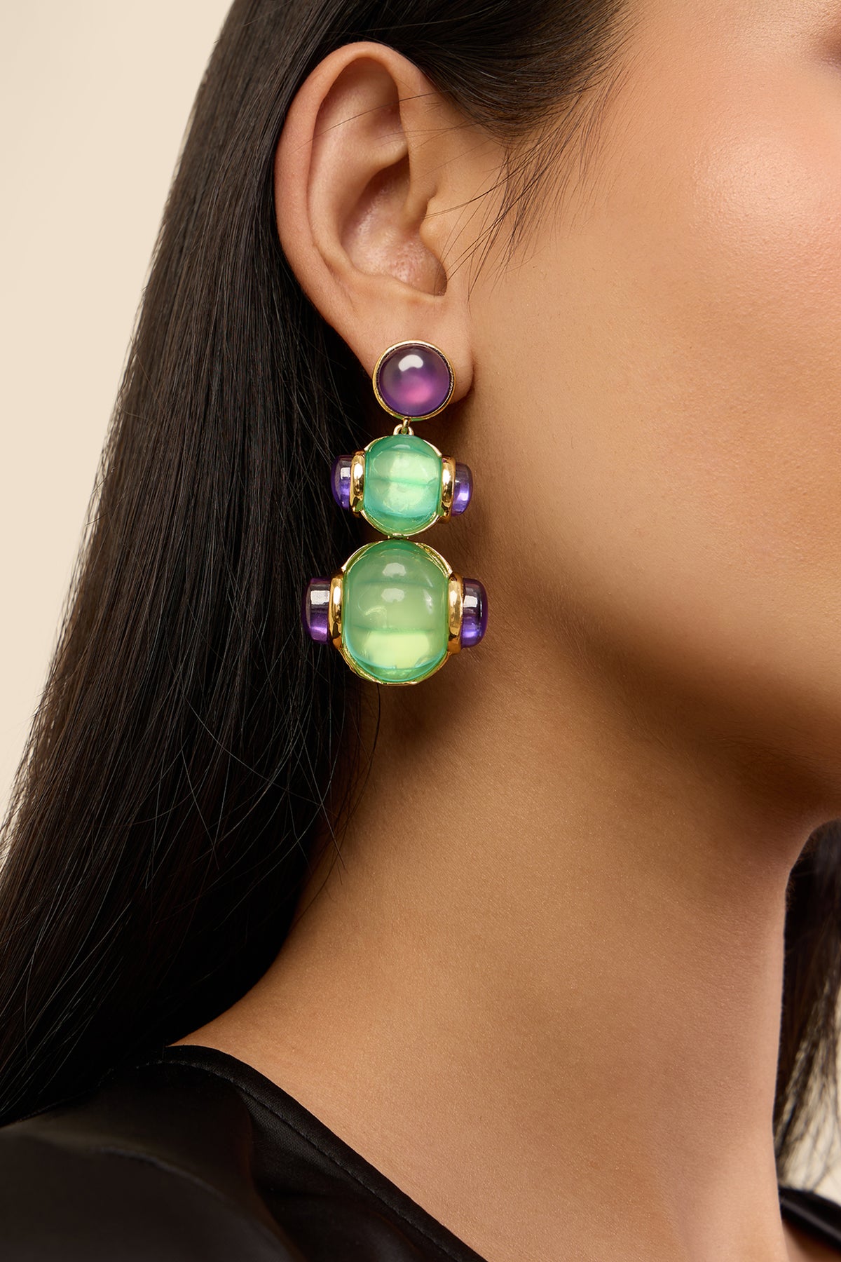 Add a touch of elegance and sophistication to your look with these aqua amethyst earrings. These earrings feature stunning blue amethyst stones and are crafted with durable resin and 18-karat gold plating for long-lasting wear. Make a statement with these exquisite earrings that bring a touch of glamour to any outfit.