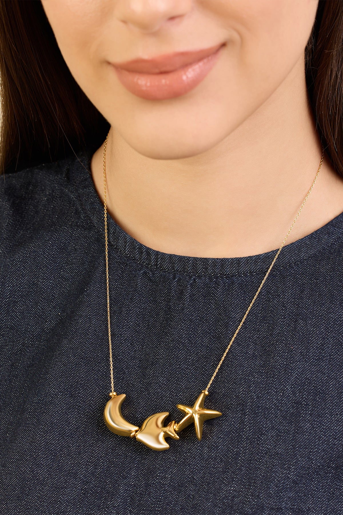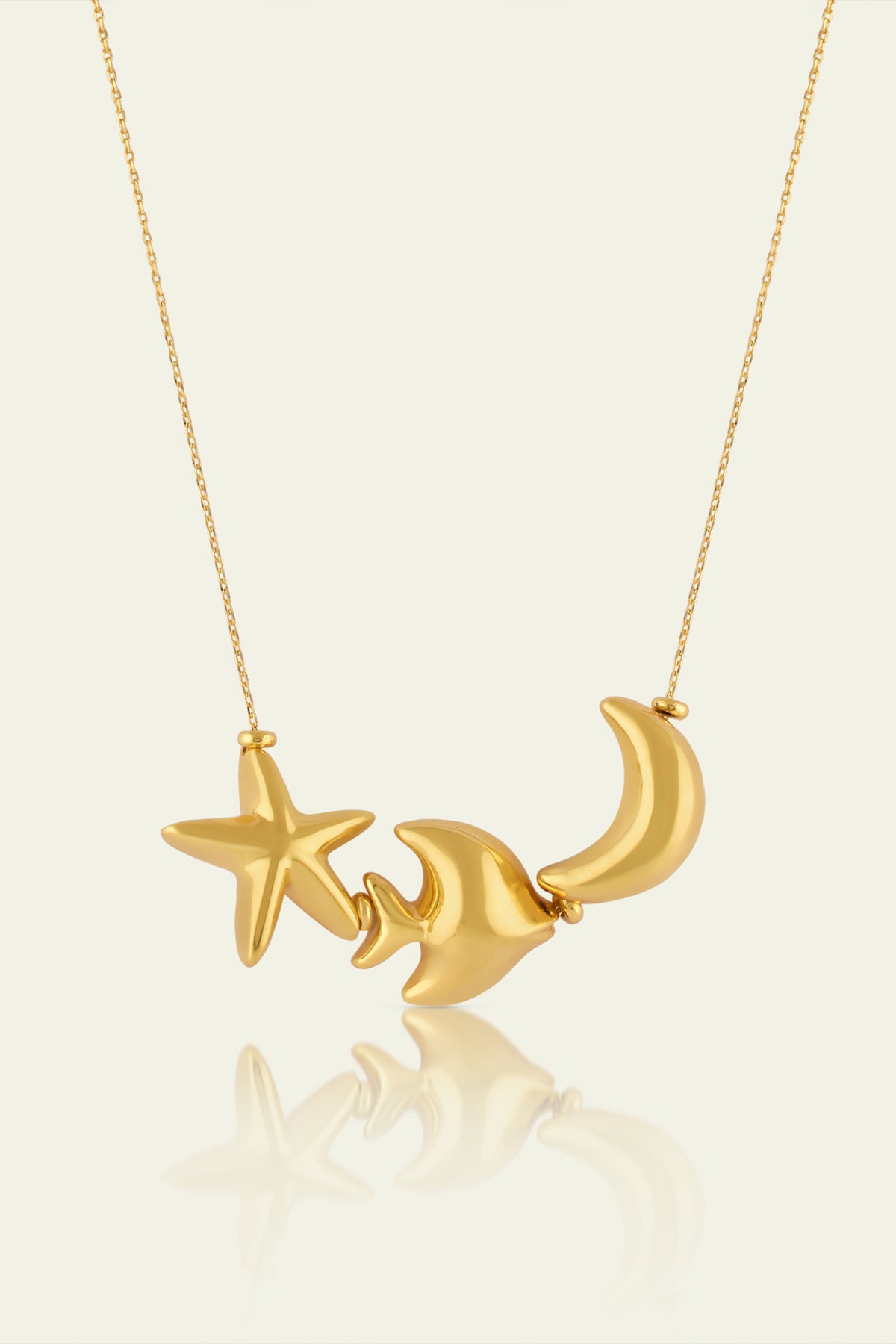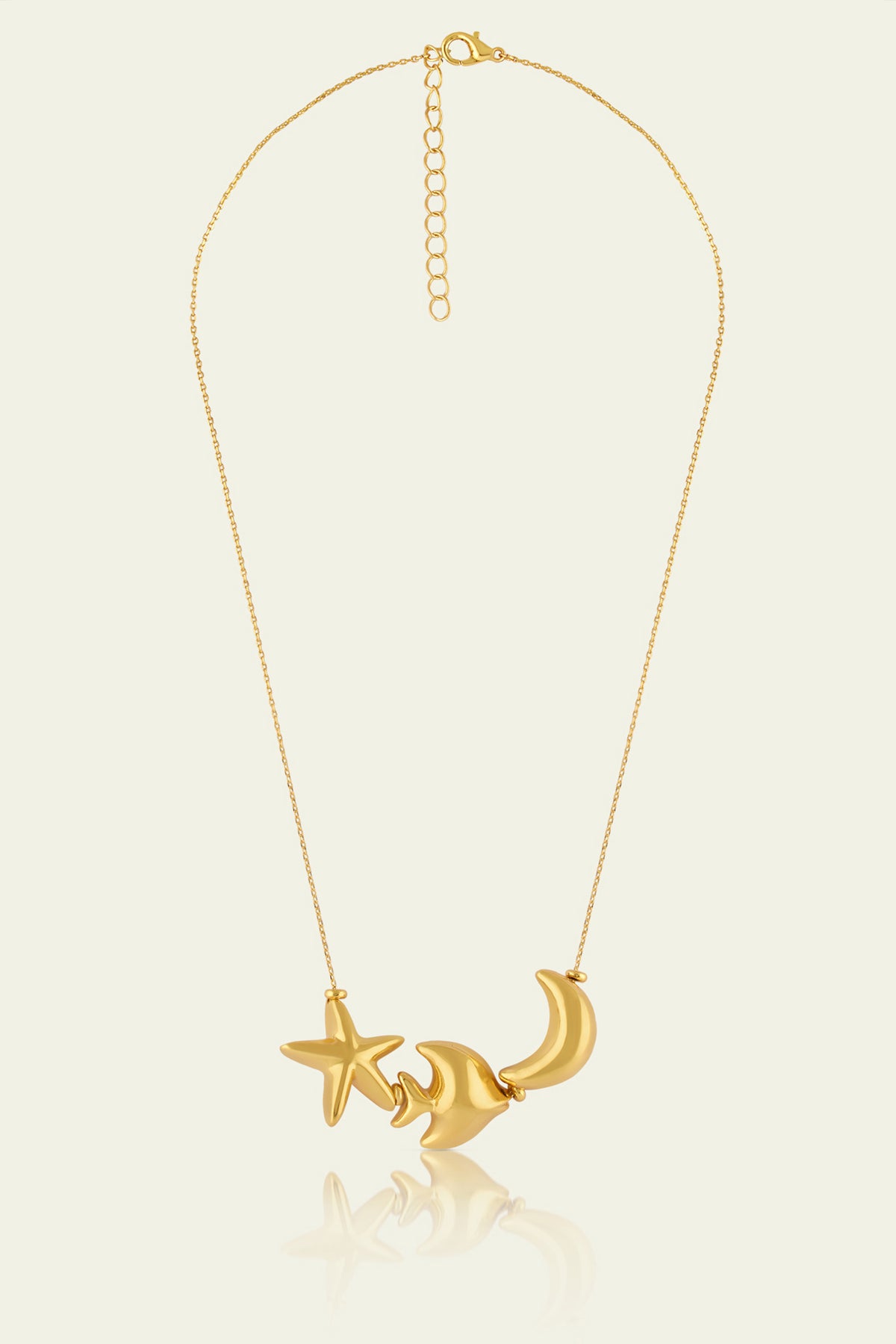 Unleash your inner risk-taker with our aqua gold charm necklace. Featuring 18-karat gold plating with a charming pendant, this necklace is perfect for everyday wear or adding some sparkle to your party outfit. Dare to make a statement with this bold accessory!