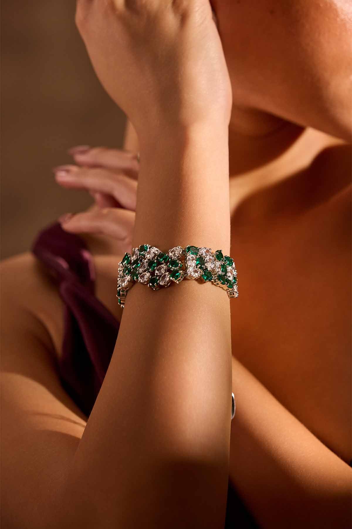 MaterialĀ : Ā Rhodium Plated Brass with E-coating | Emerald Stones