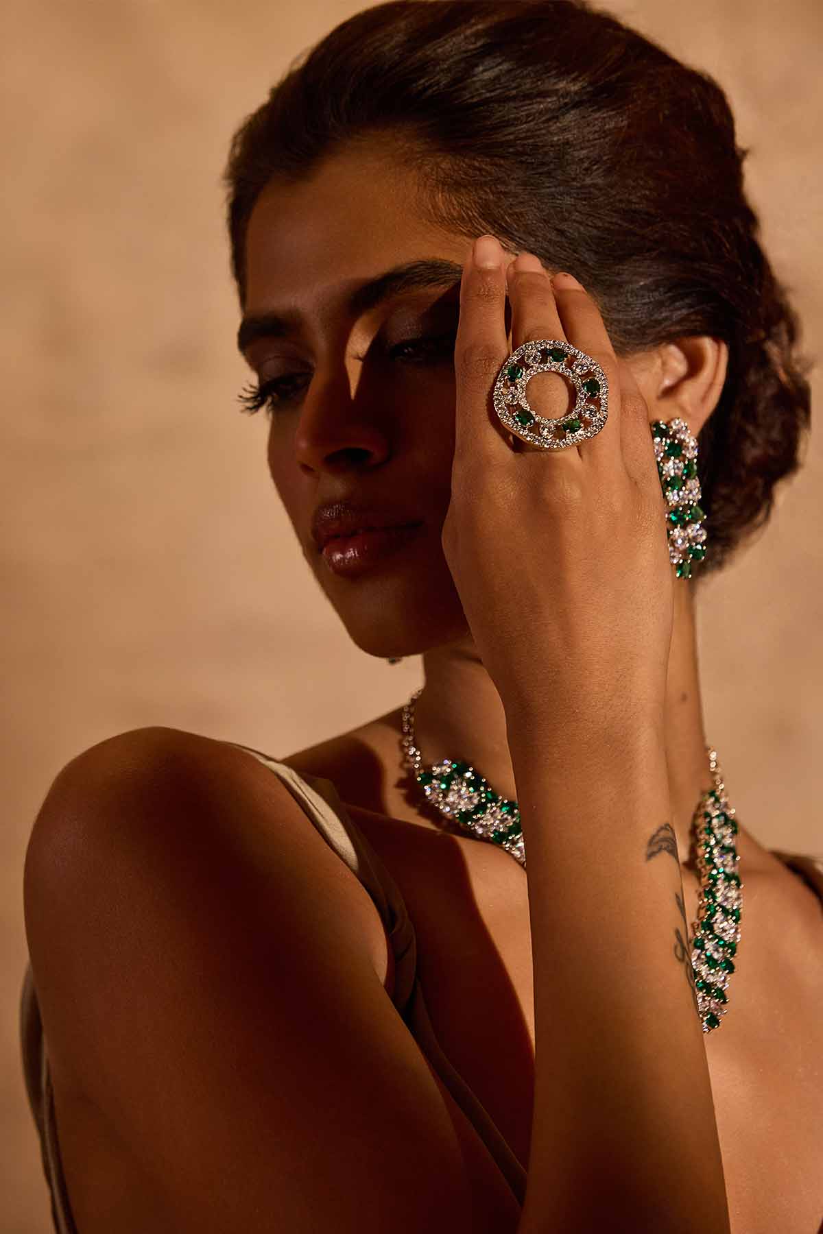MaterialĀ : Ā Rhodium Plated Brass with E-coating | Emerald Stones