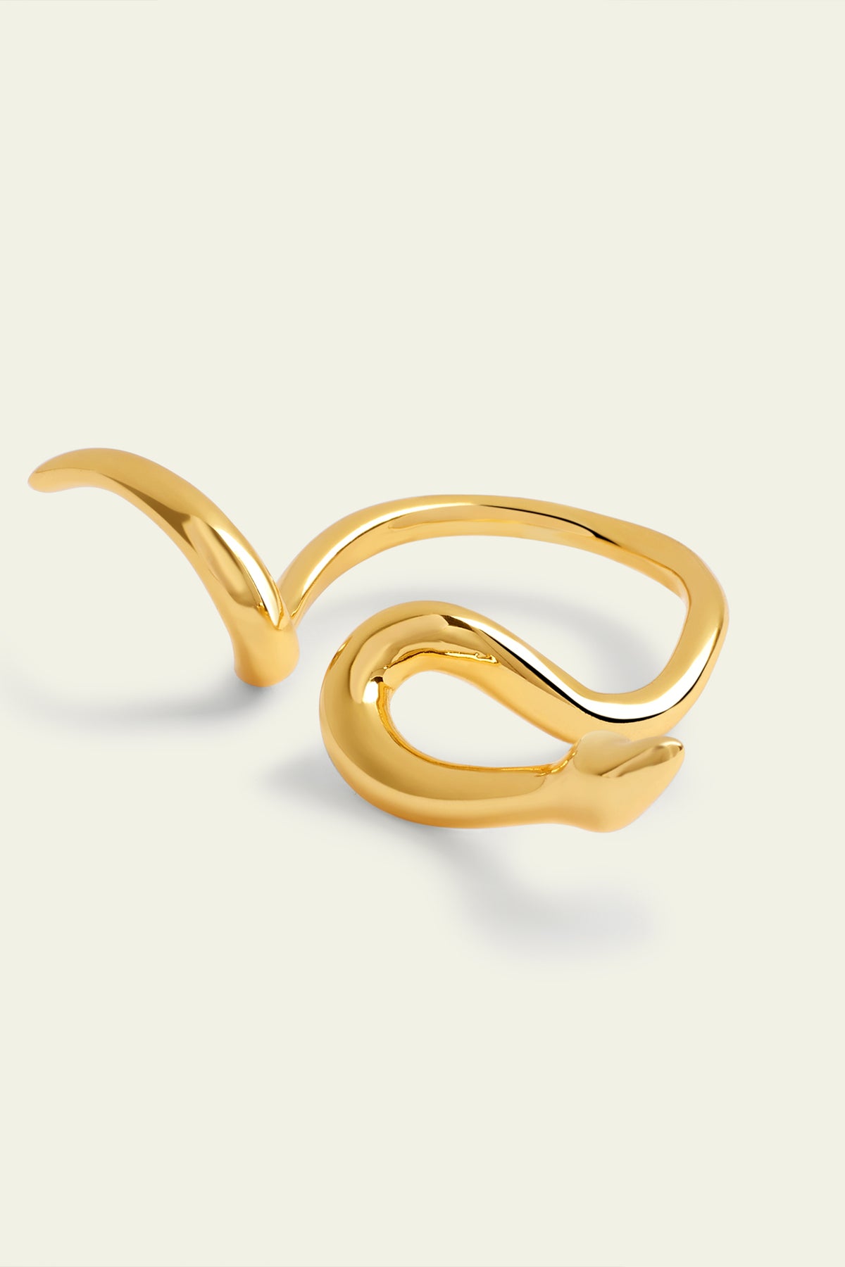 Unleash your daring side with the gold slither ring! This versatile open ring, featuring 18-karat gold plating, is perfect for both everyday wear and party occasions. Elevate your style and embrace the thrill of taking risks with this bold and luxurious accessory.