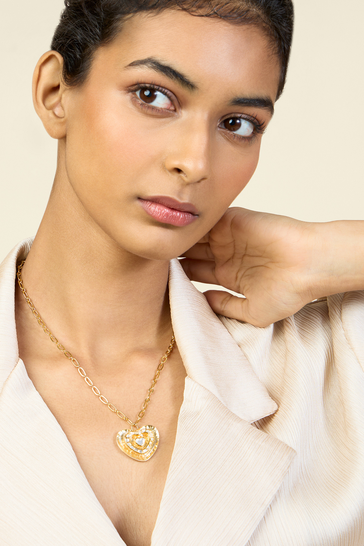 Love Mirror Pendant Necklace In 18Kt Gold Plated Isharya Indian Designer Wear Melange Singapore Online Shopping