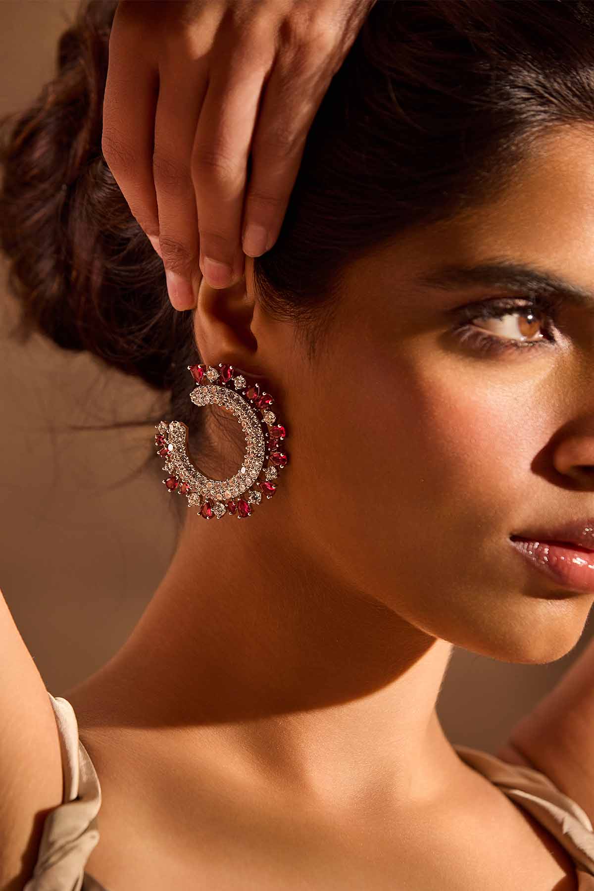 MNSH Royal Crescent Ruby Diamond Earring indian designer wear online shopping melange singapore