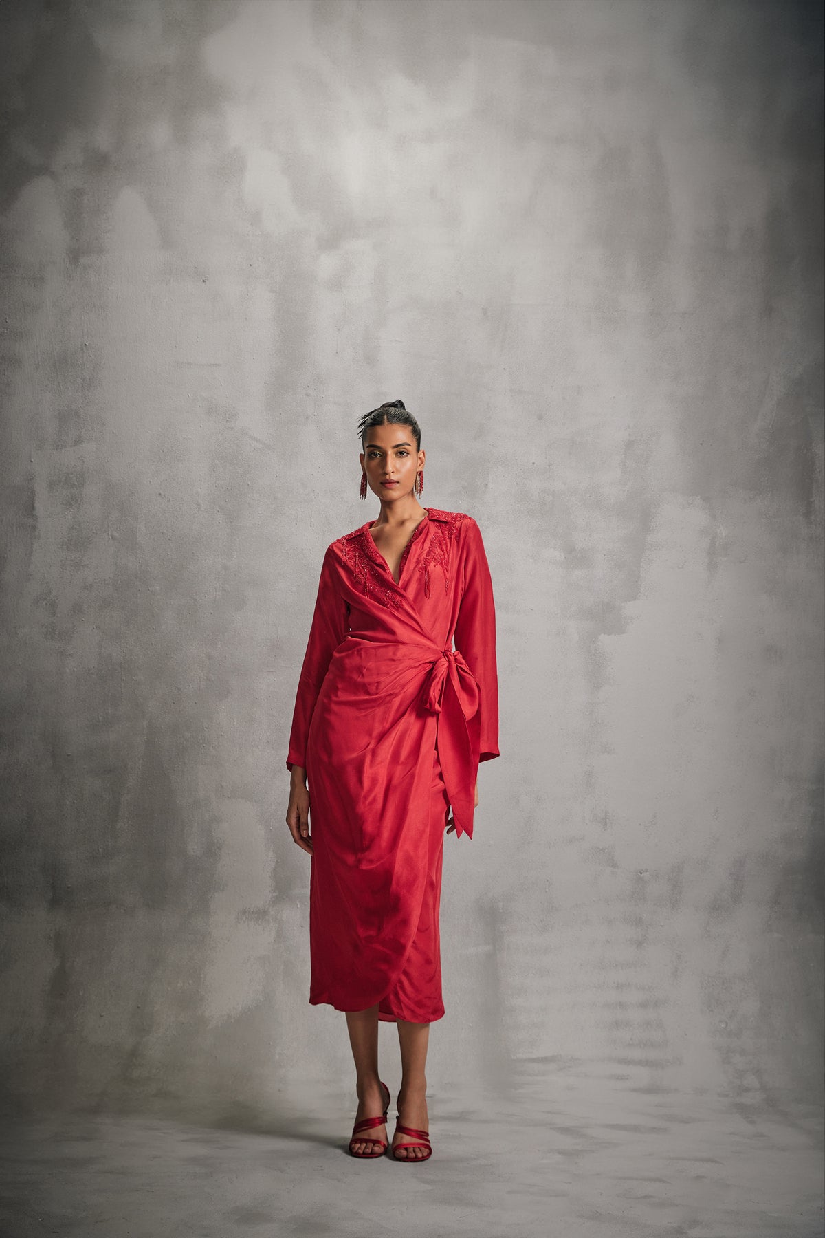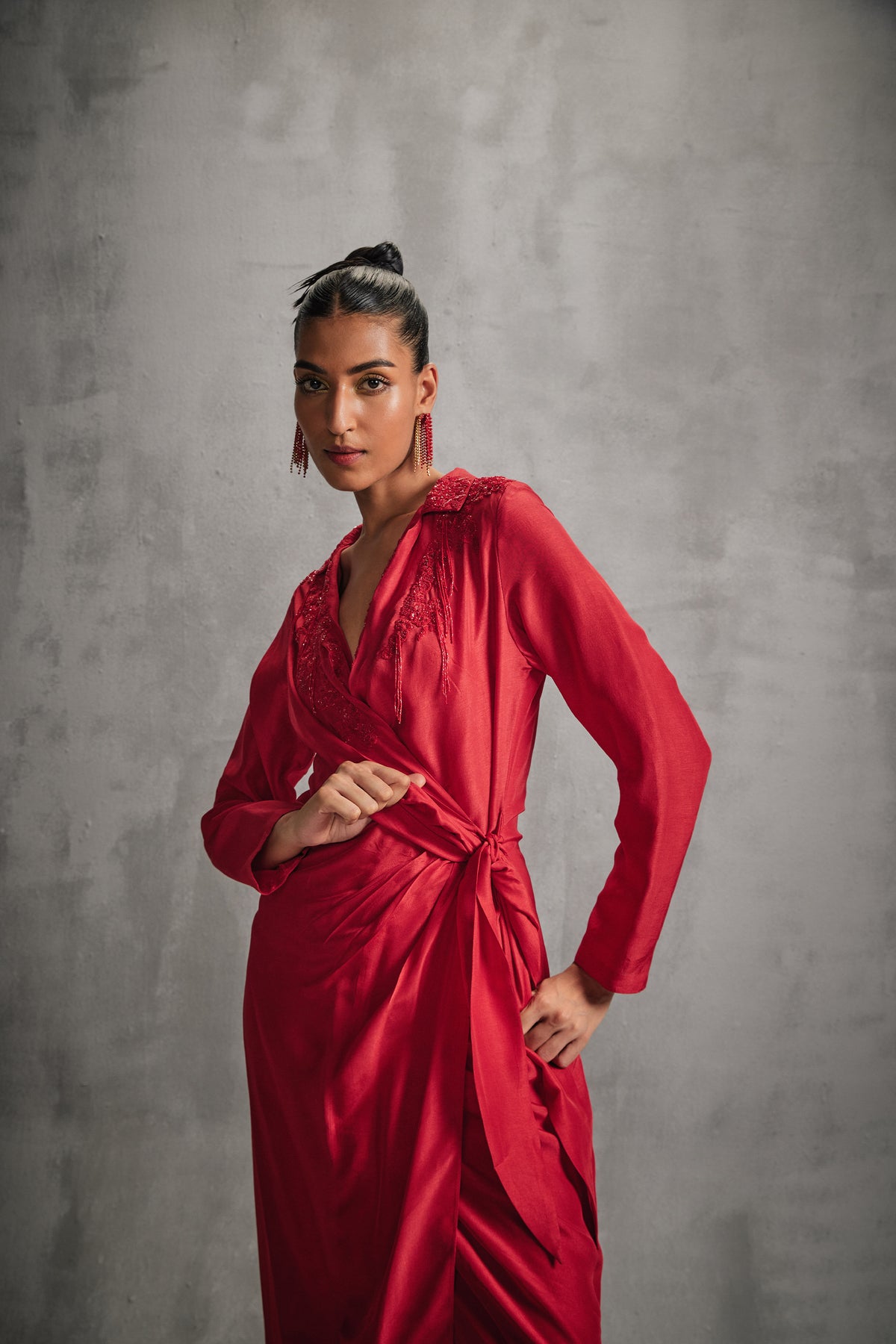 Namrata Joshipura Rosettes Midi Crossover Dress indian designer wear online shopping melange singapore