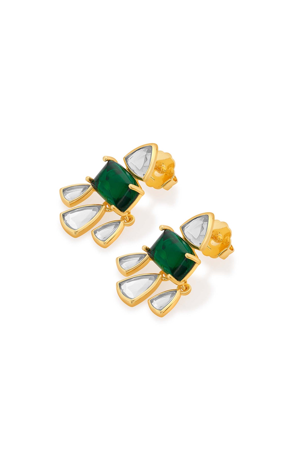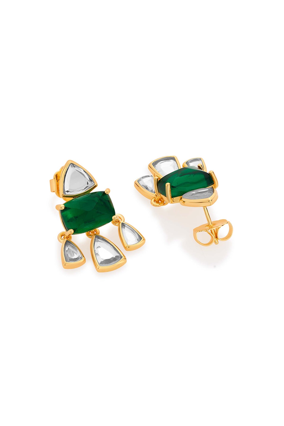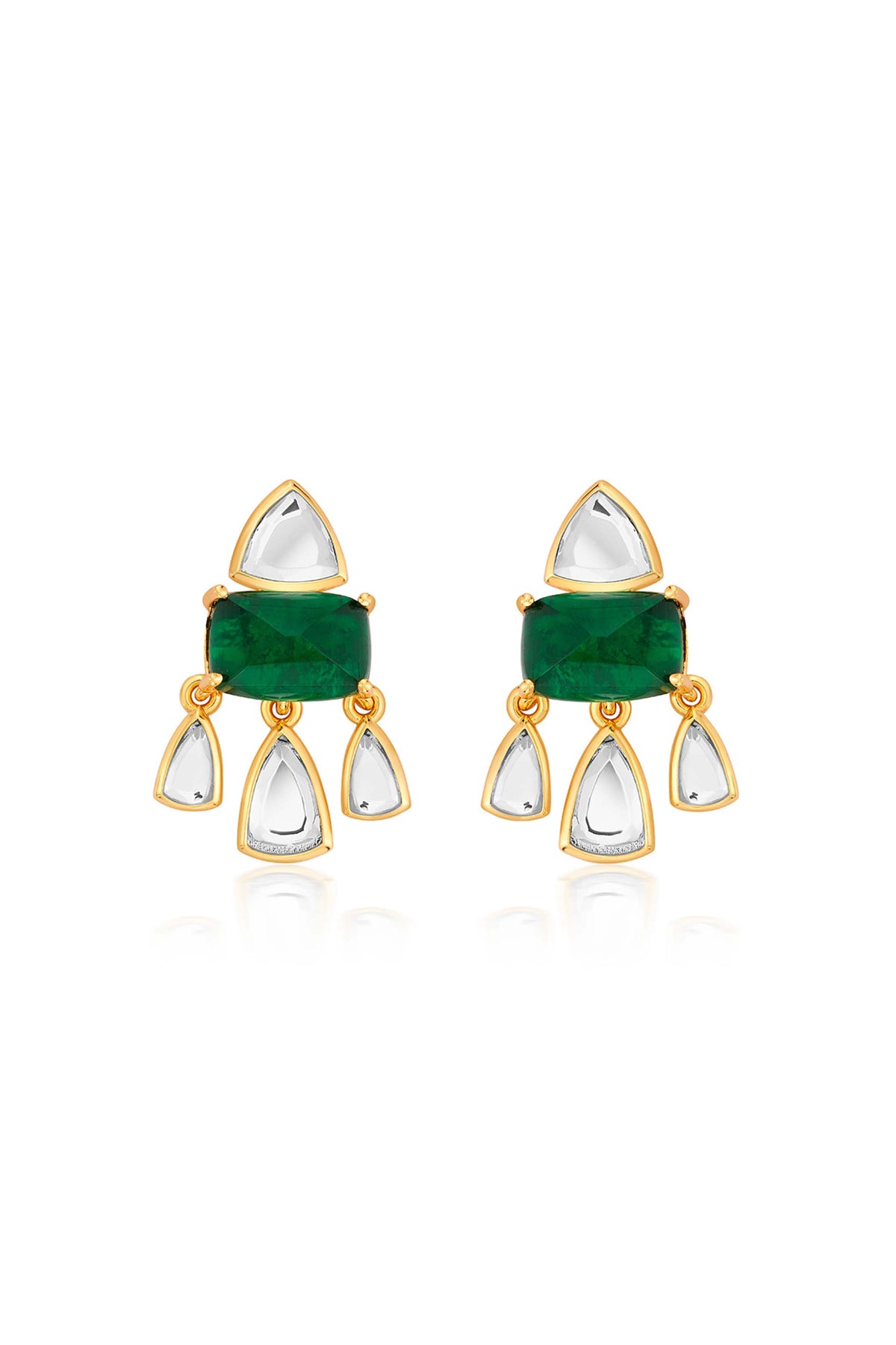 Designed with a distinct hydro emerald at the centre, these earrings feature shimmering polki-cut mirrors
