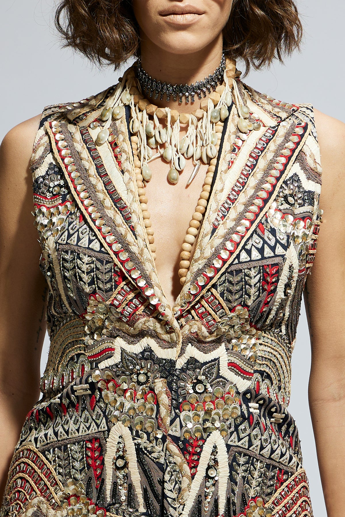 SVA Blue Abstract Embellished Jacket Set indian designer wear online shopping melange singapore