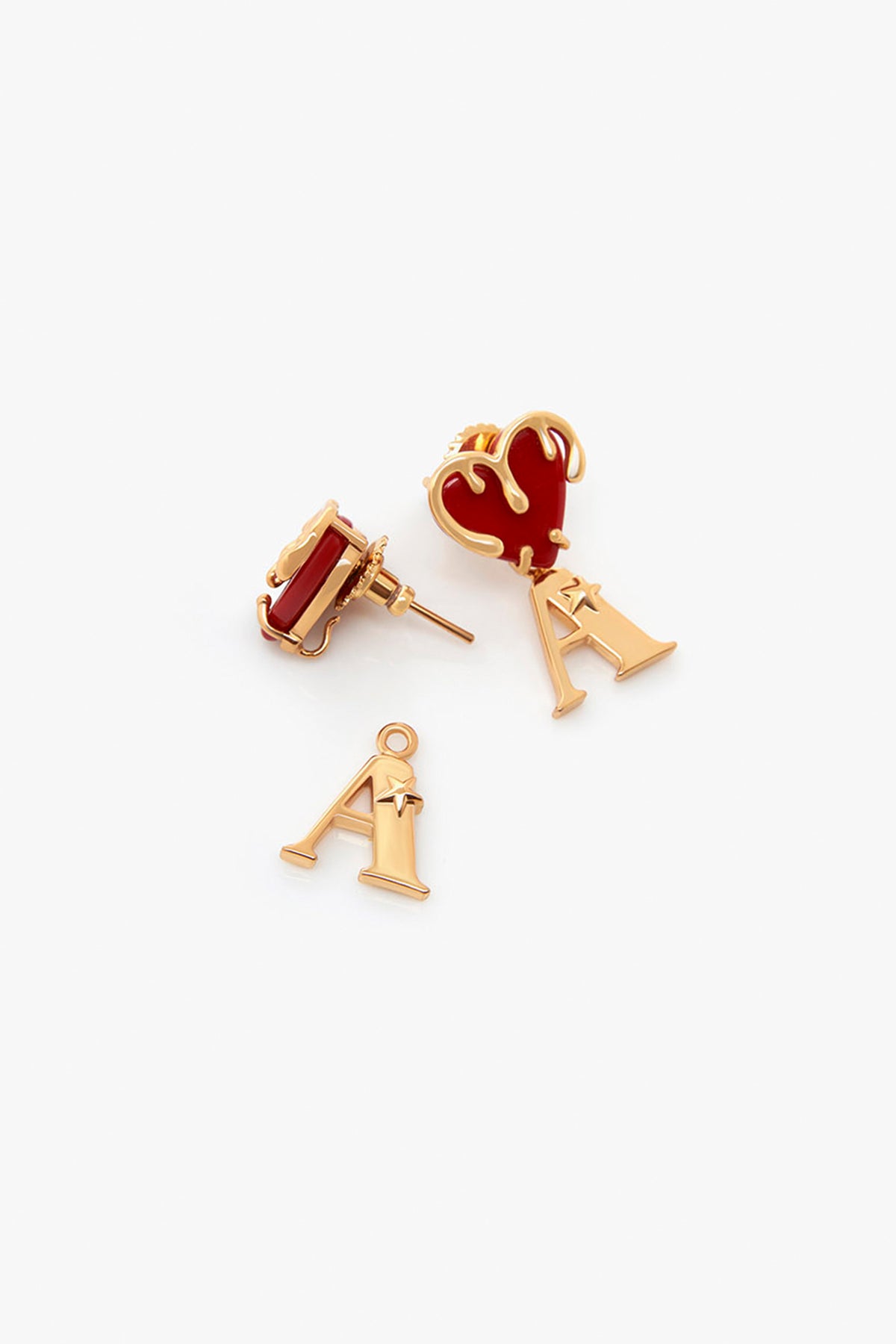 In its mini proportions, the (name) strikes a balance between versatile and vibrant. The 22k gold-plated pair deliveries an individualistic attitude with a red heart and dripping accents. With impeccable craftsmanship, the pair is sure to make a statement. Personalize with your initial today!