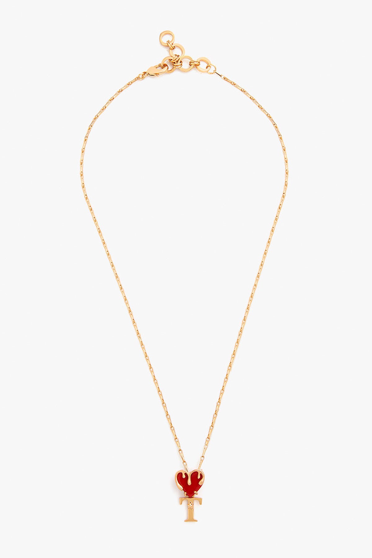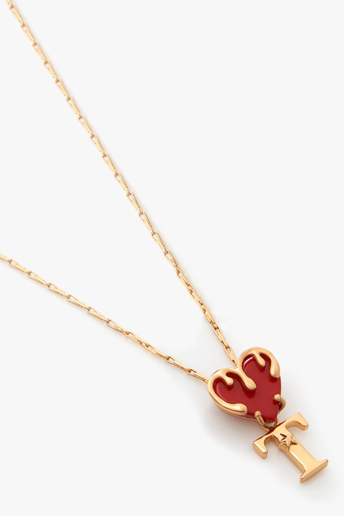 A modern grunge approach characterizes the (name). The 22k gold-plated pendant necklace deliveries vibrancy with a red heart and gold dripping accents. With flawless craftsmanship, the pendant can be personalized with your initial or theirs. Celebrate love with outhouse this season!