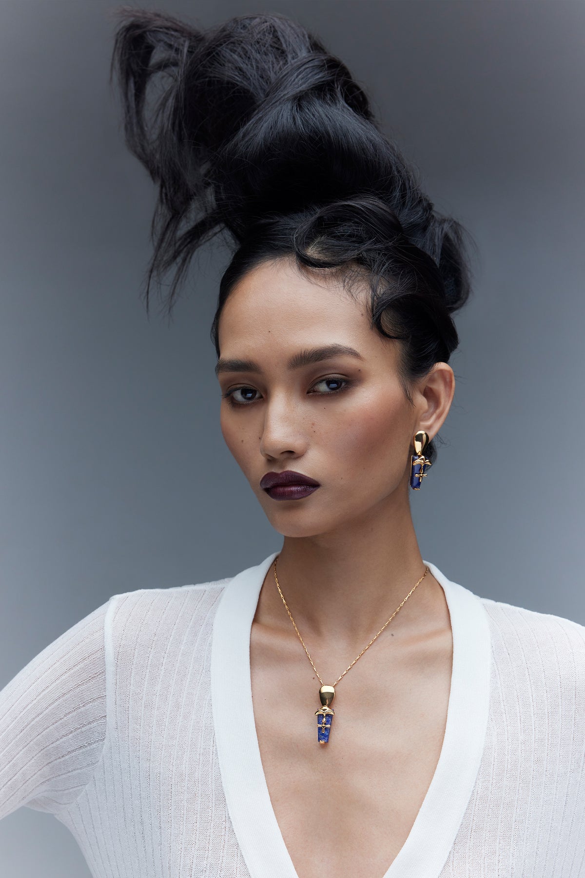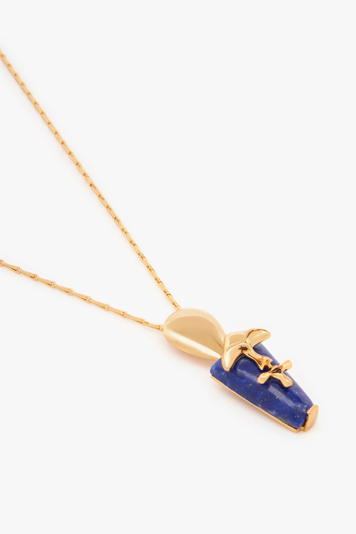 Experience the iconism of the lazuli sculpt pendant, where the iconic shroom motif pairs harmoniously with the mesmerizing lapis lazuli stone in 22 k rose gold finish . Believed to awaken inner wisdom and self-expression, this pendant weaves a story of striking elegance. The delicate chain, a celestial accomplice to the design, transforms this necklace into a symbol of refined grace. Please note, the natural color and texture of lapis lazuli may vary, celebrating the individuality inherent in the heart of nature.