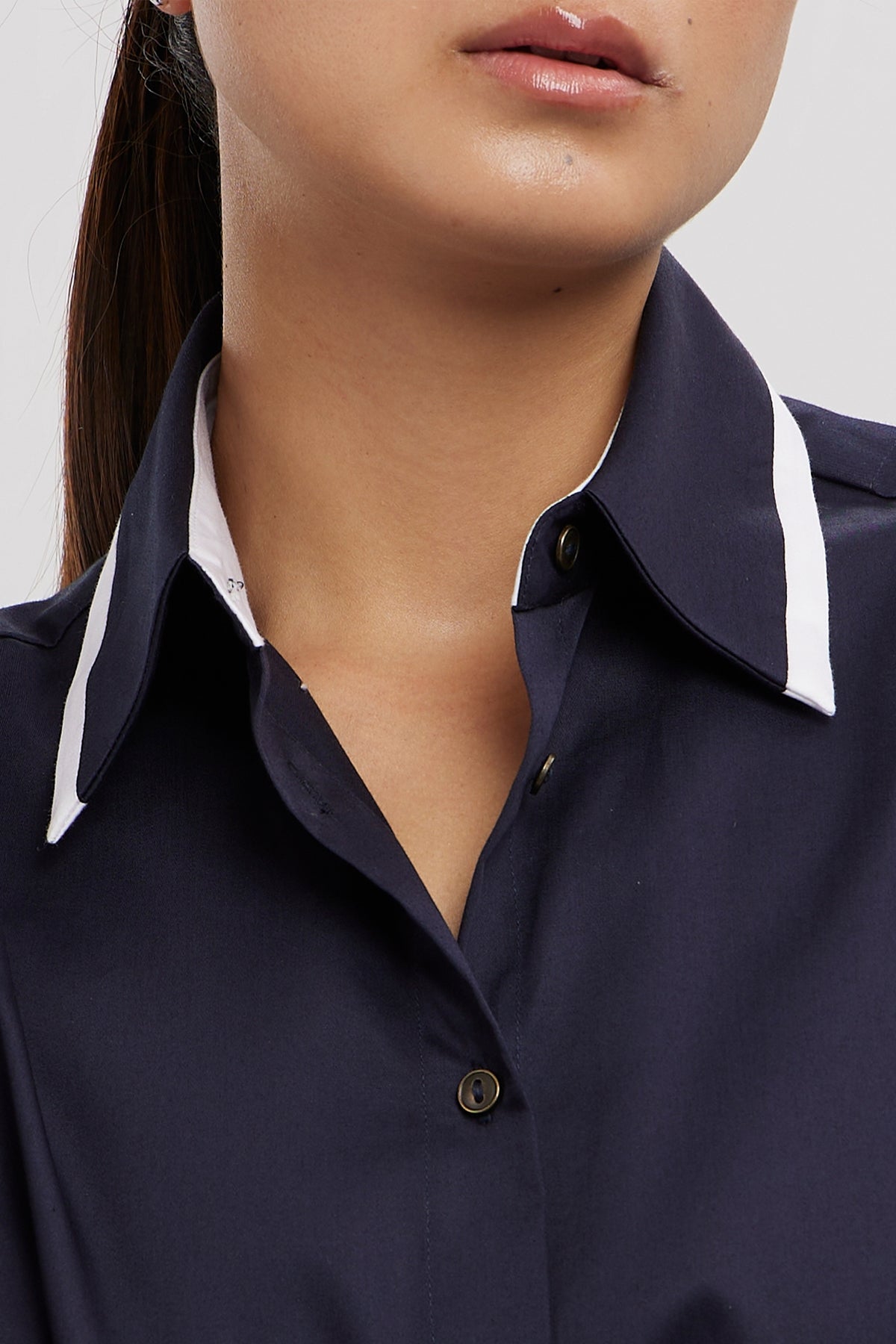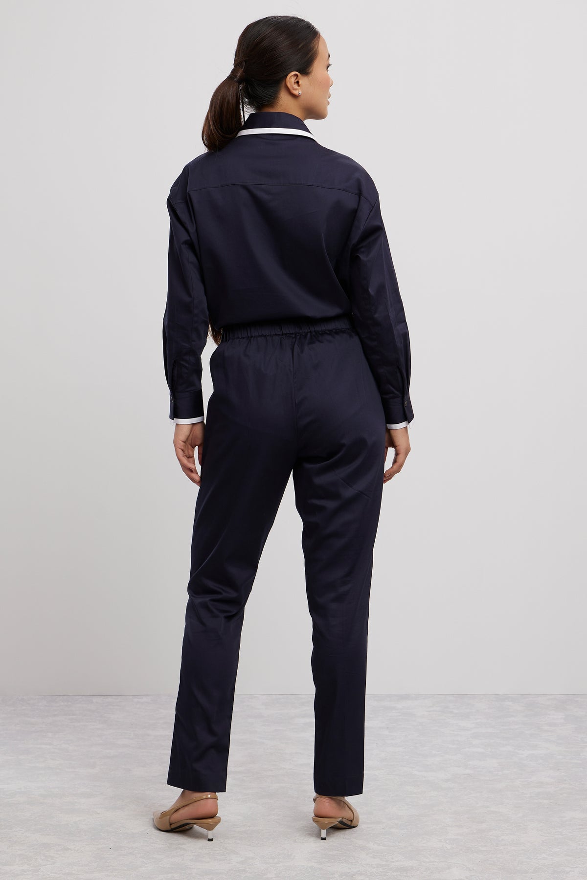 Boyfriend fit 2 colour classic collar with white trimming full sleeves with white trimming paired with comfortable pants with side pockets, this set effortlessly blends luxury with ease.