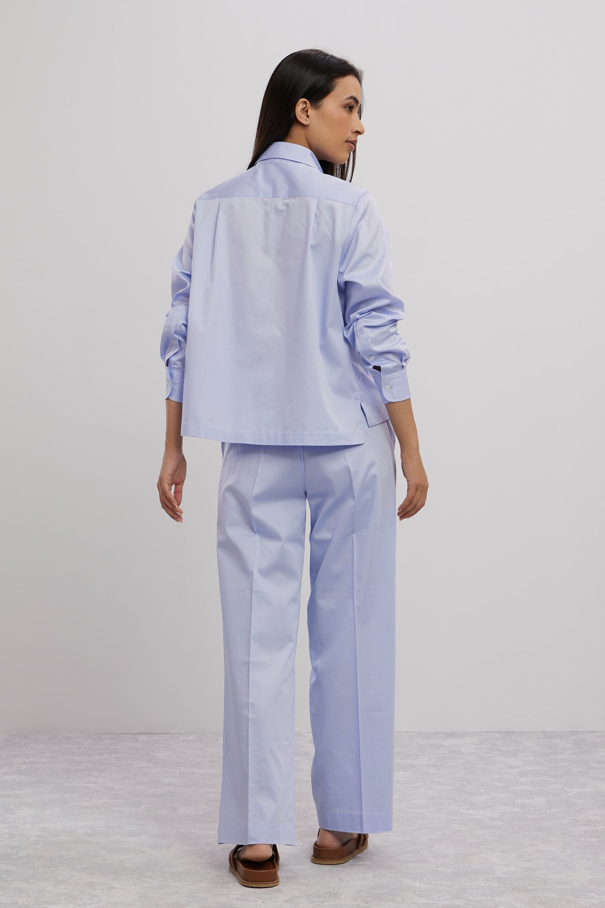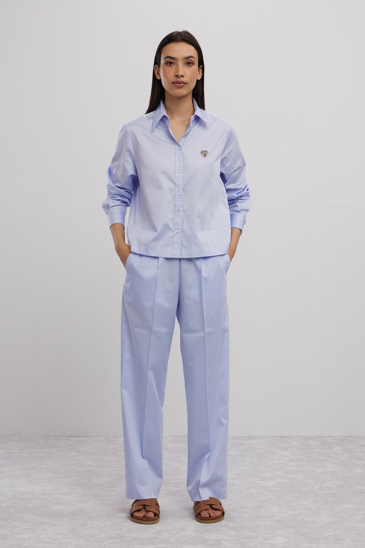 Sky Blue Swarovski Heart Crop Shirt With Loose Pants