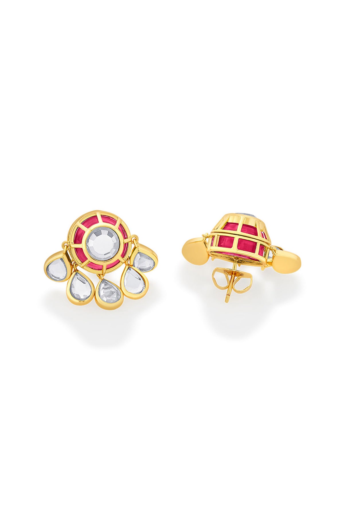These earrings feature glossy 18-karat gold-plating, artfully looped mirrors along with pink enamel. Earn double the style points by sporting a matching necklace.