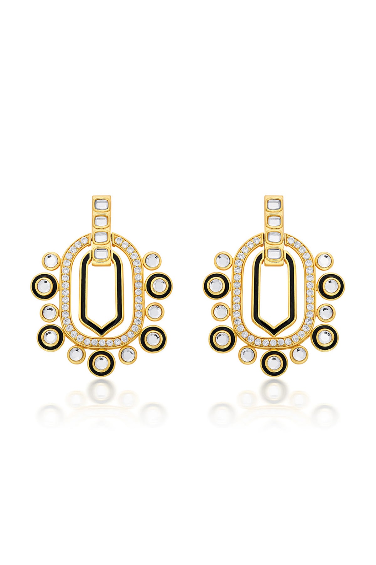 One of our favorites, these show-stealing earrings are shaped like a chandelier and detailed with CZ, enamel and shimmering mirrors.