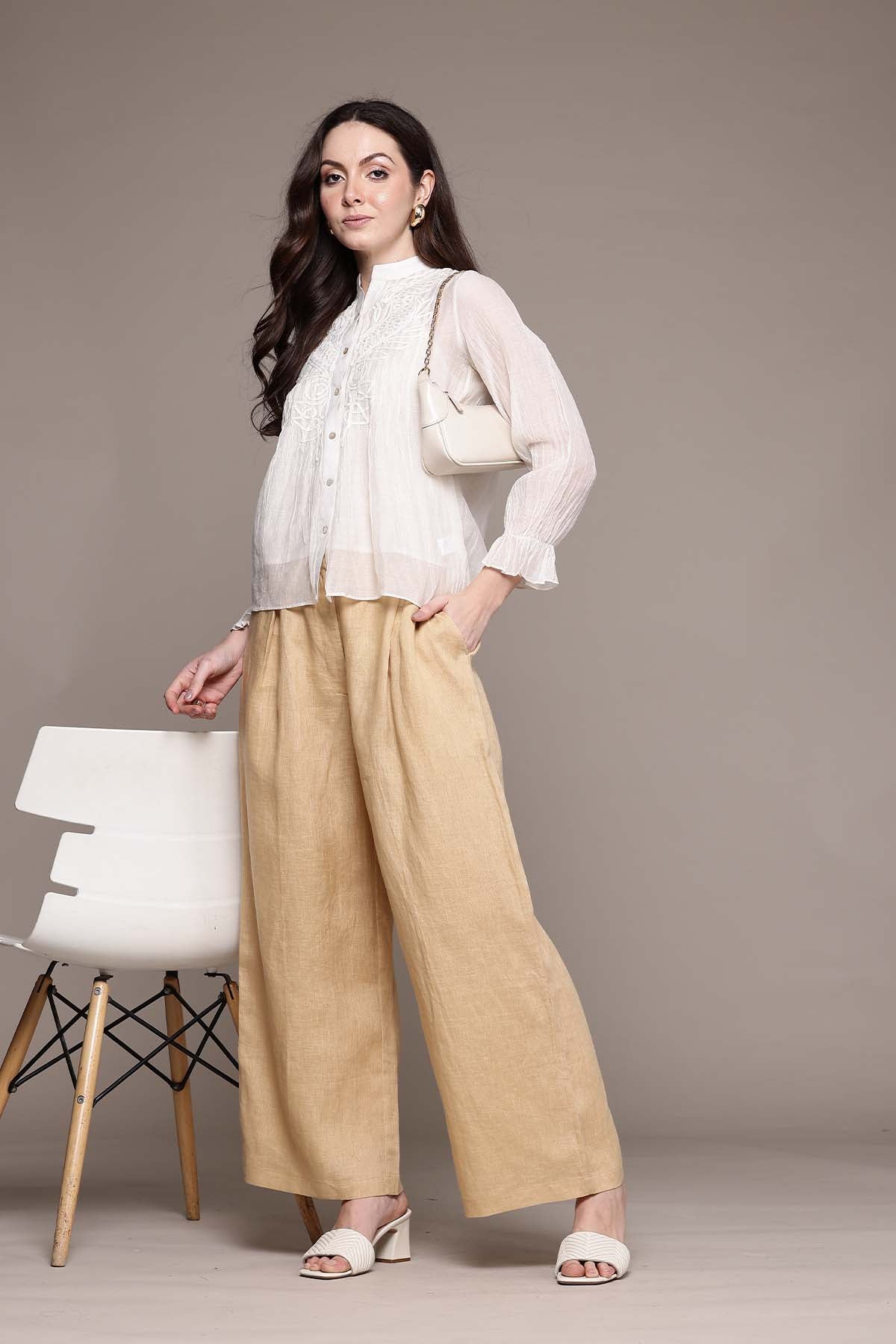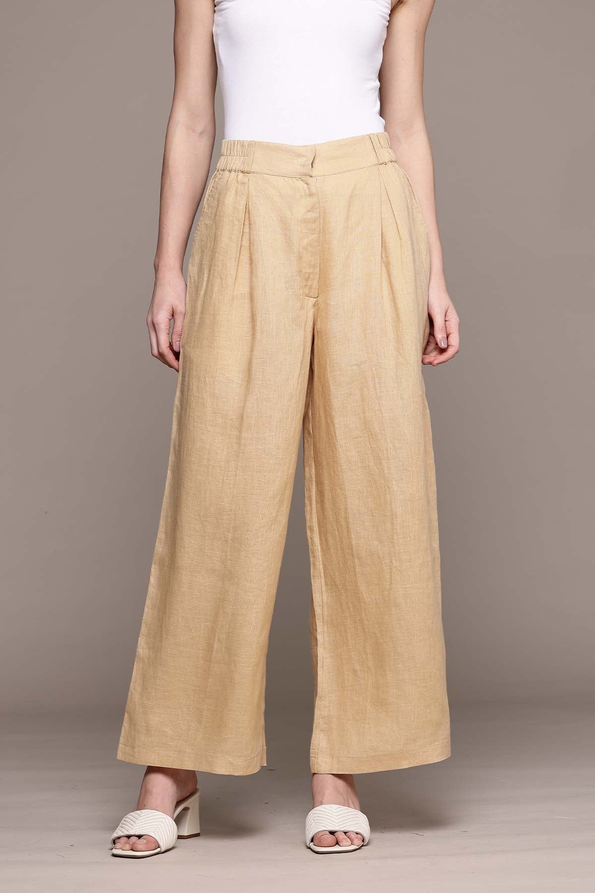 Ritu Kumar Beige Essential-Bottoms Pants indian designer wear online shopping melange singapore