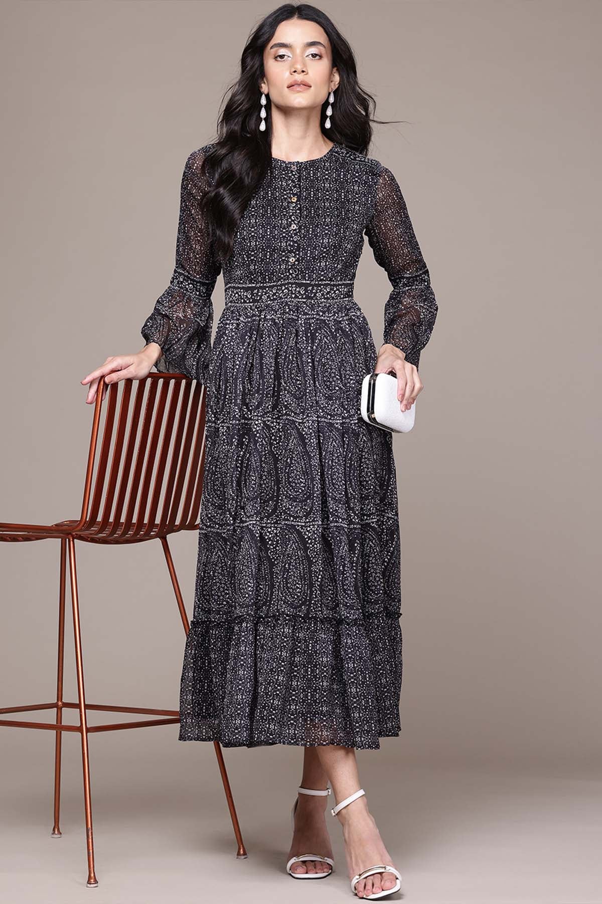 Aarke Ritu Kumar Black Ashfi Long Dress indian designer wear online shopping melange singapore