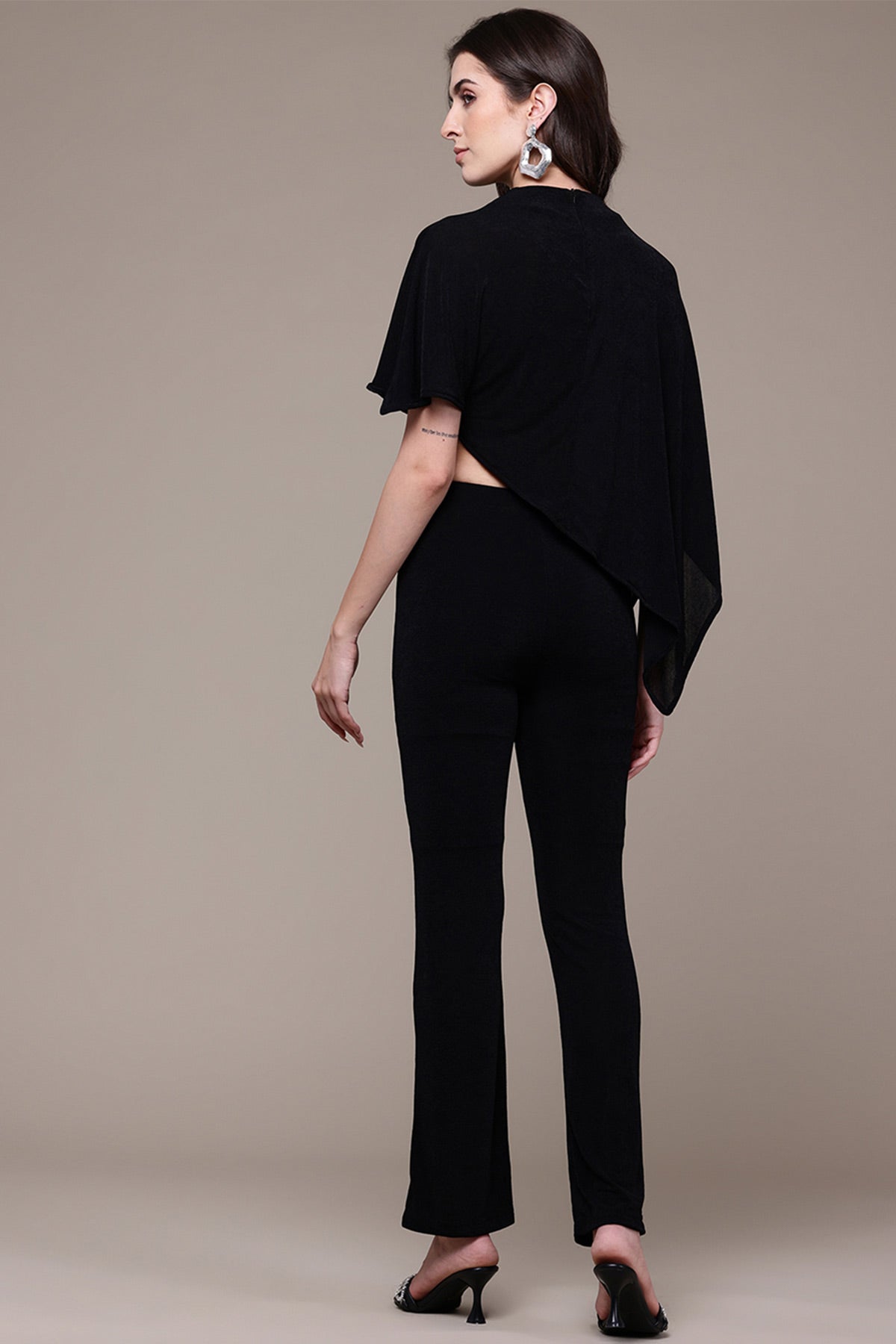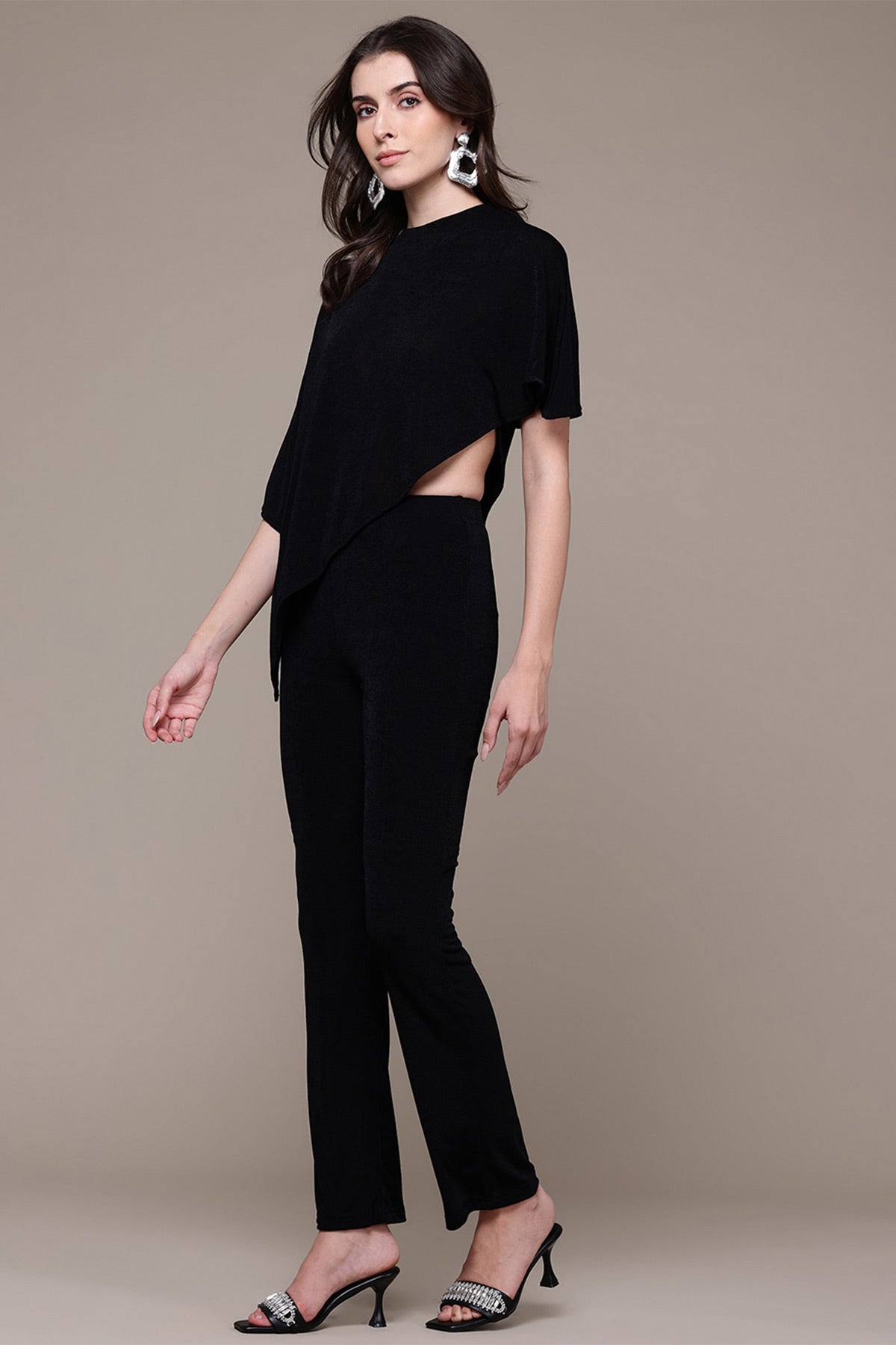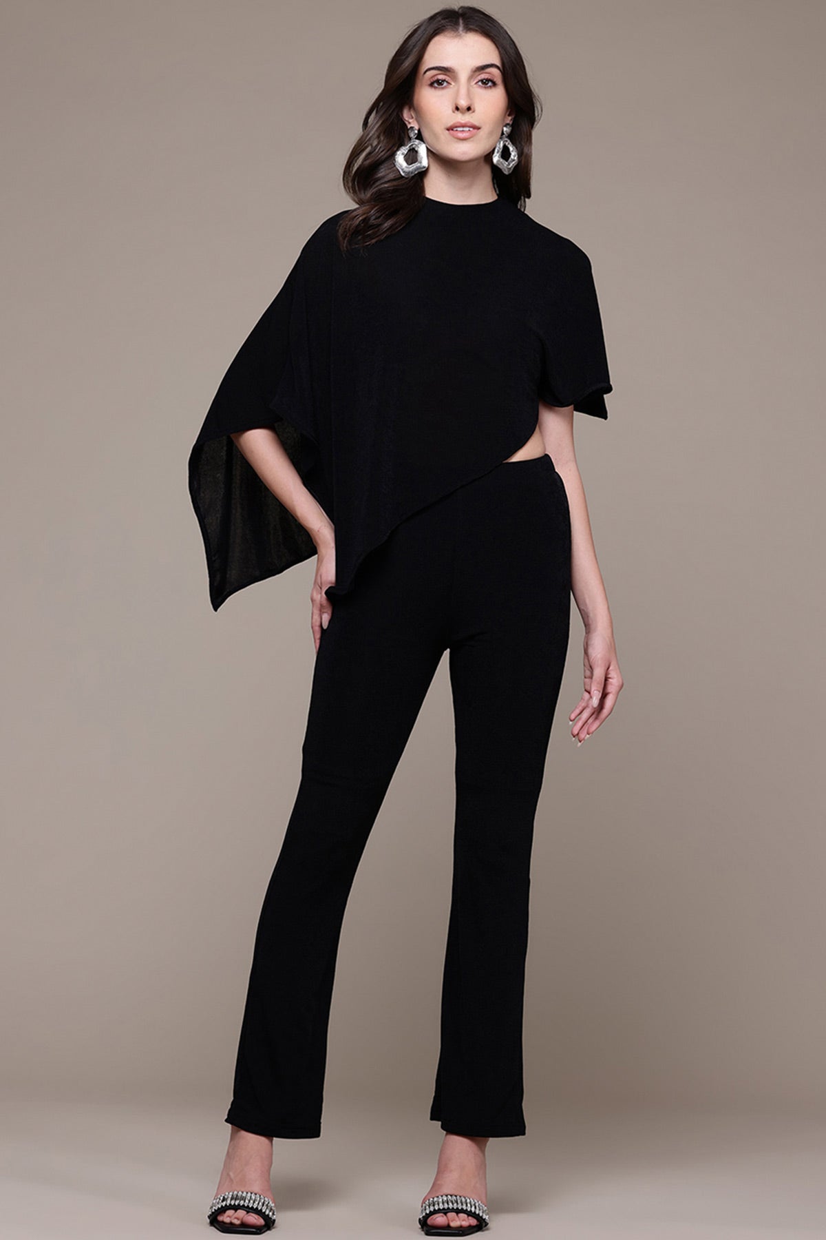 Black ottavia solid top with pant co-ord set