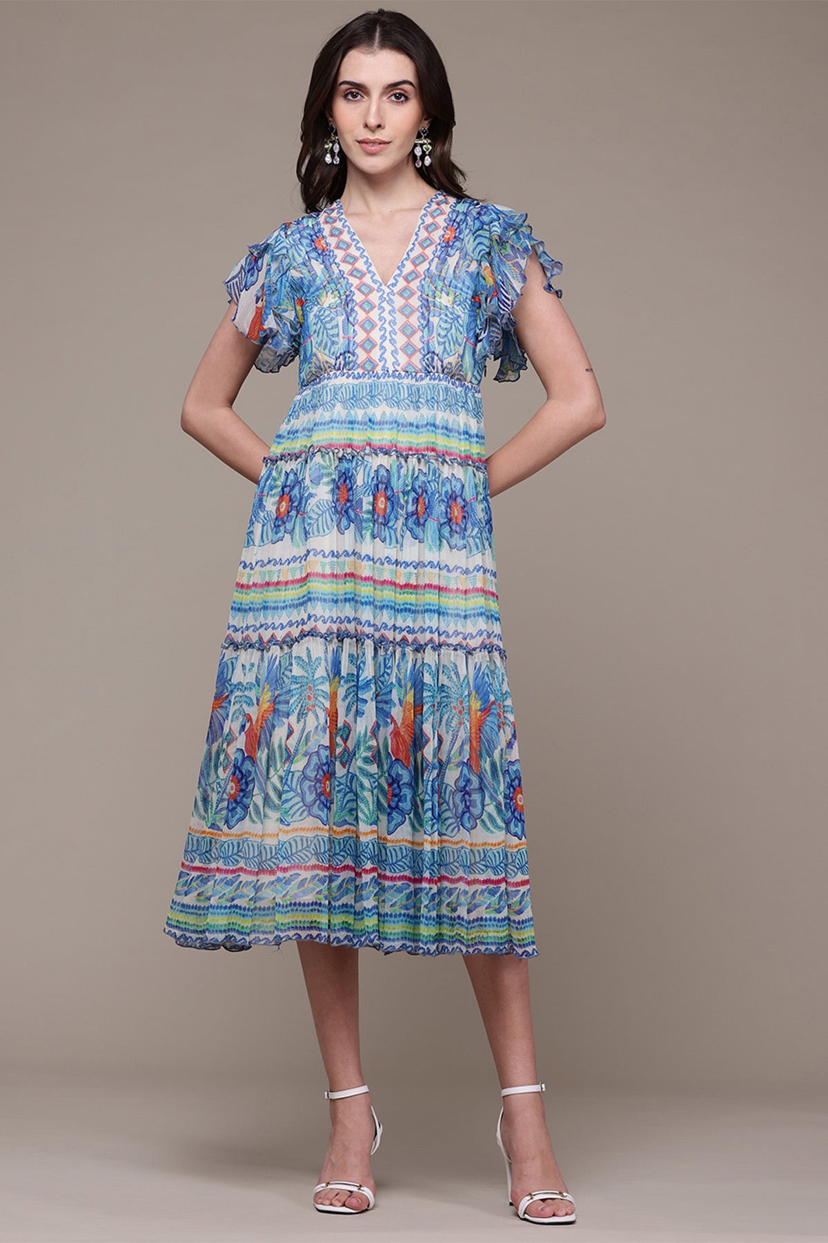Label Ritu Kumar Blue Malibu Long Dress indian designer wear online shopping melange singapore