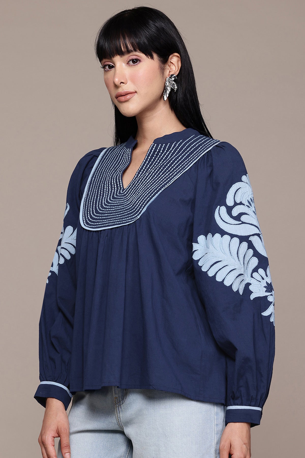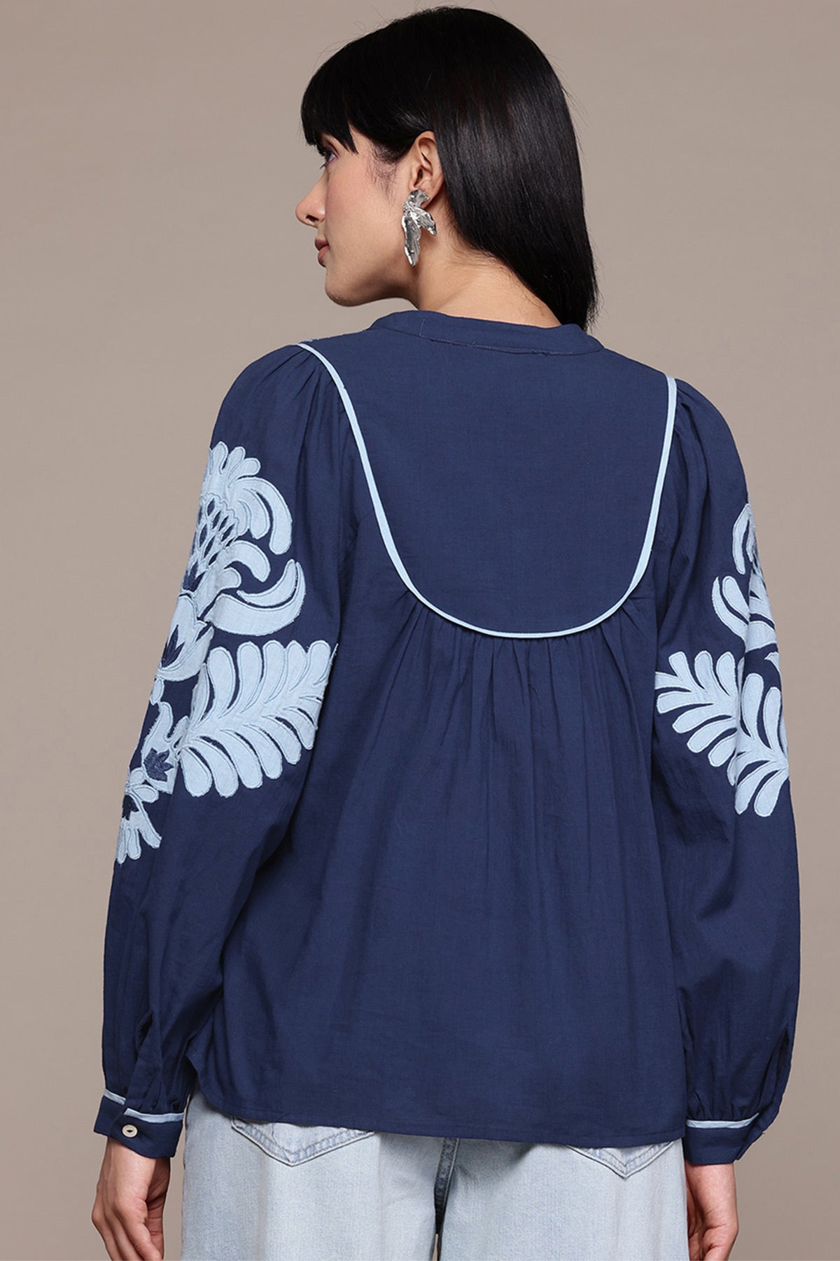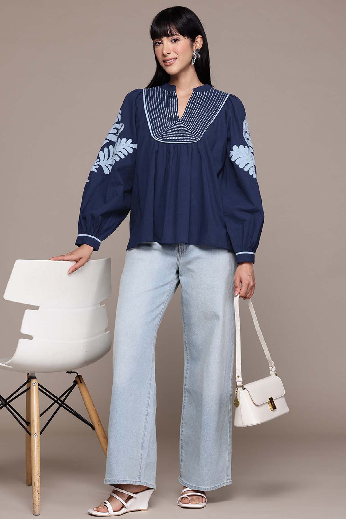 Label Ritu Kumar Navy Maddeline Embroidered Top indian designer wear online shopping melange singapore