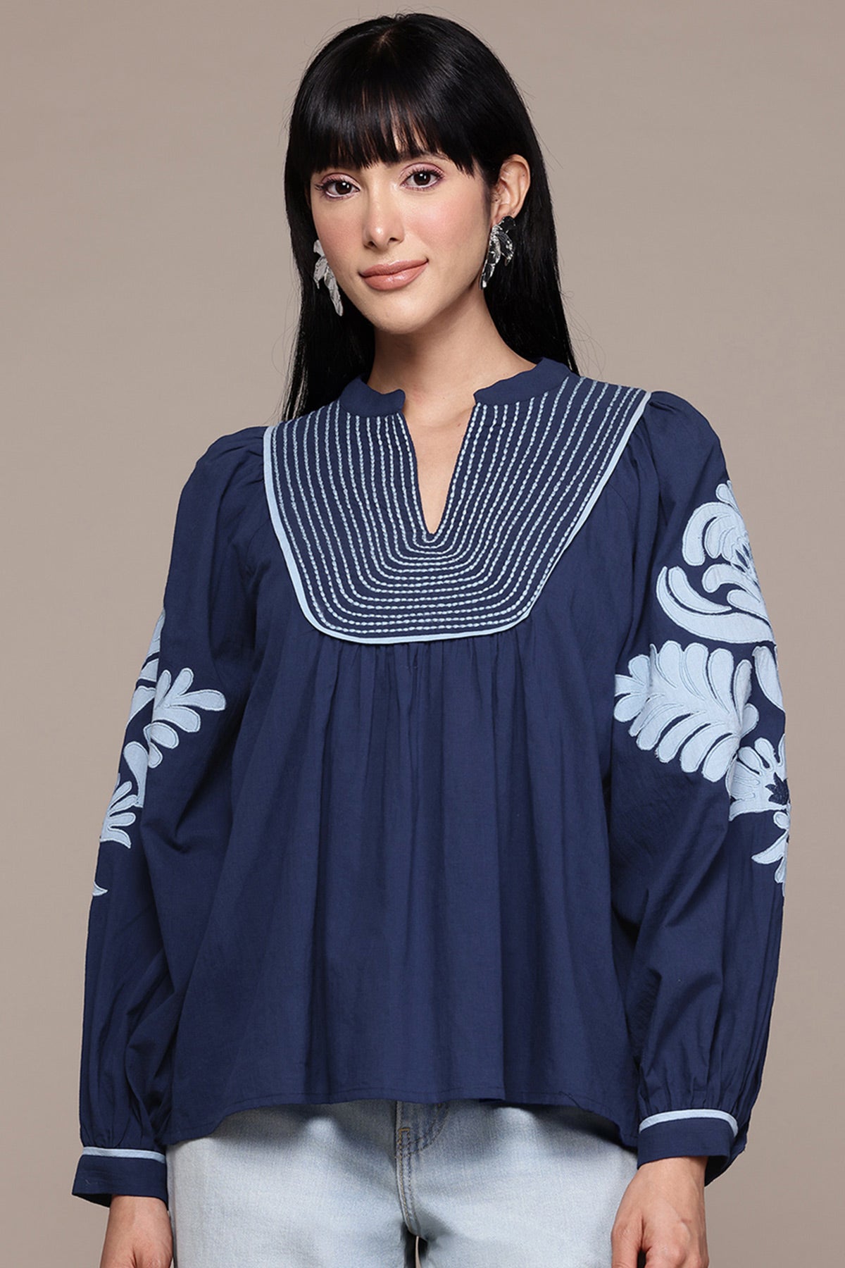 Navy Maddeline Embroidered Top
