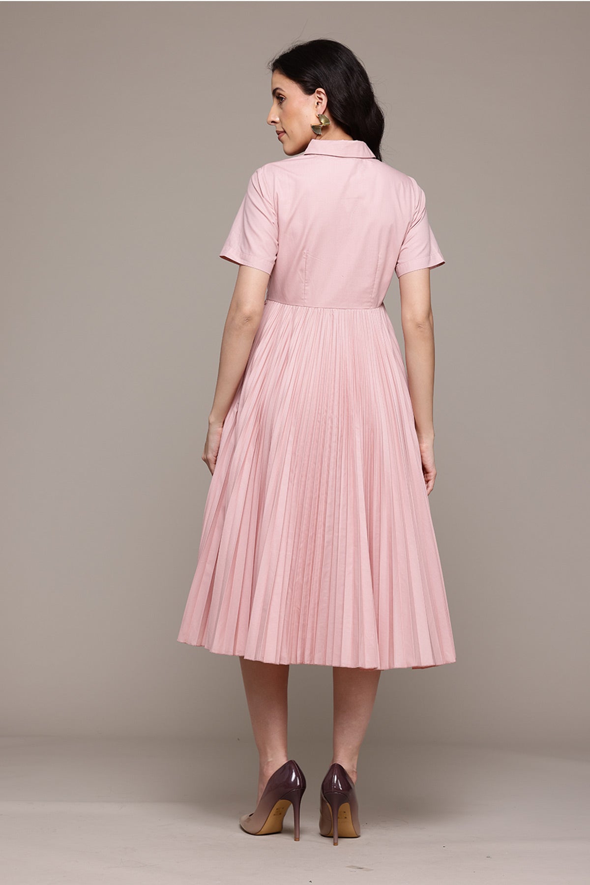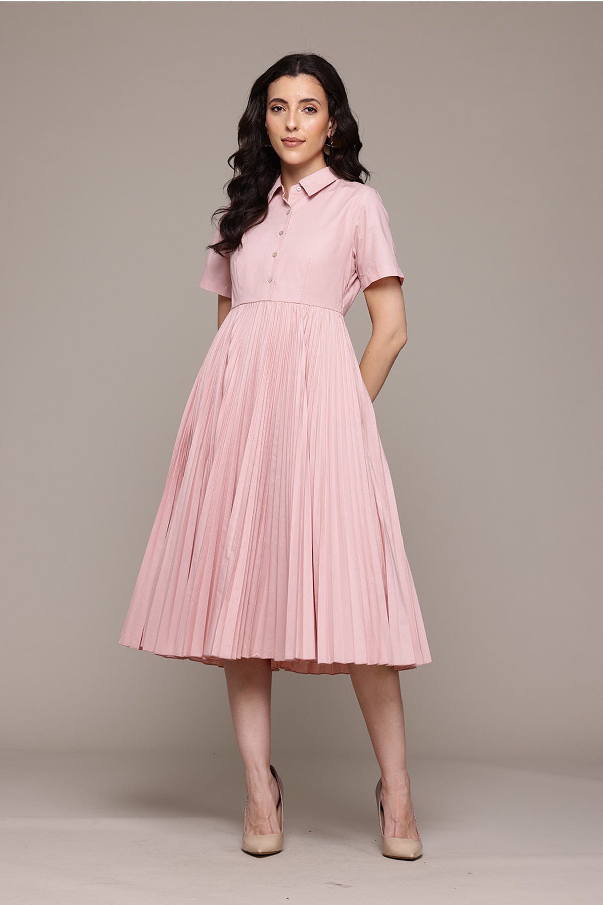Pink core pleated shirt dress