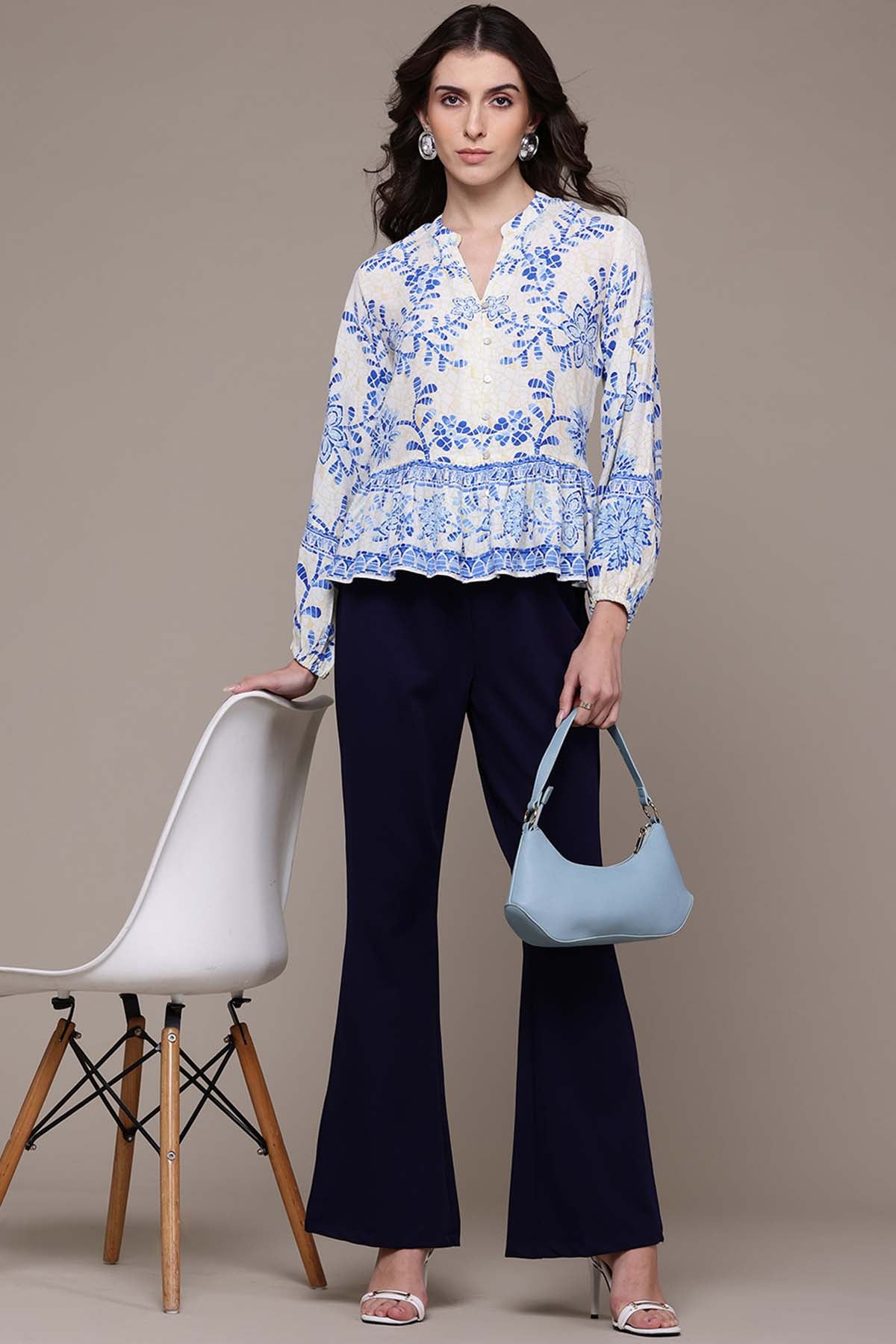 White rosine printed top