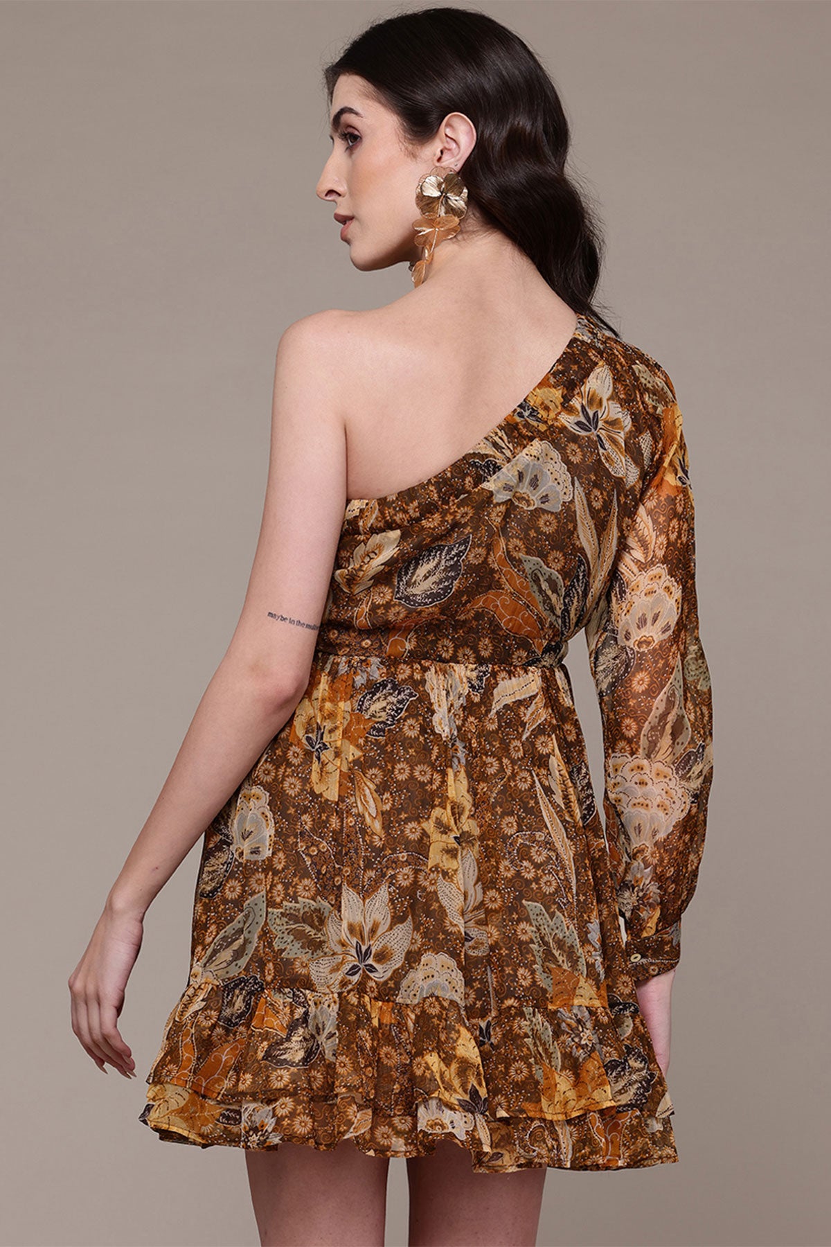 Label Ritu Kumar Black V Neck Printed Full Sleevess Sort Dress indian designer wear online shopping melange singapore