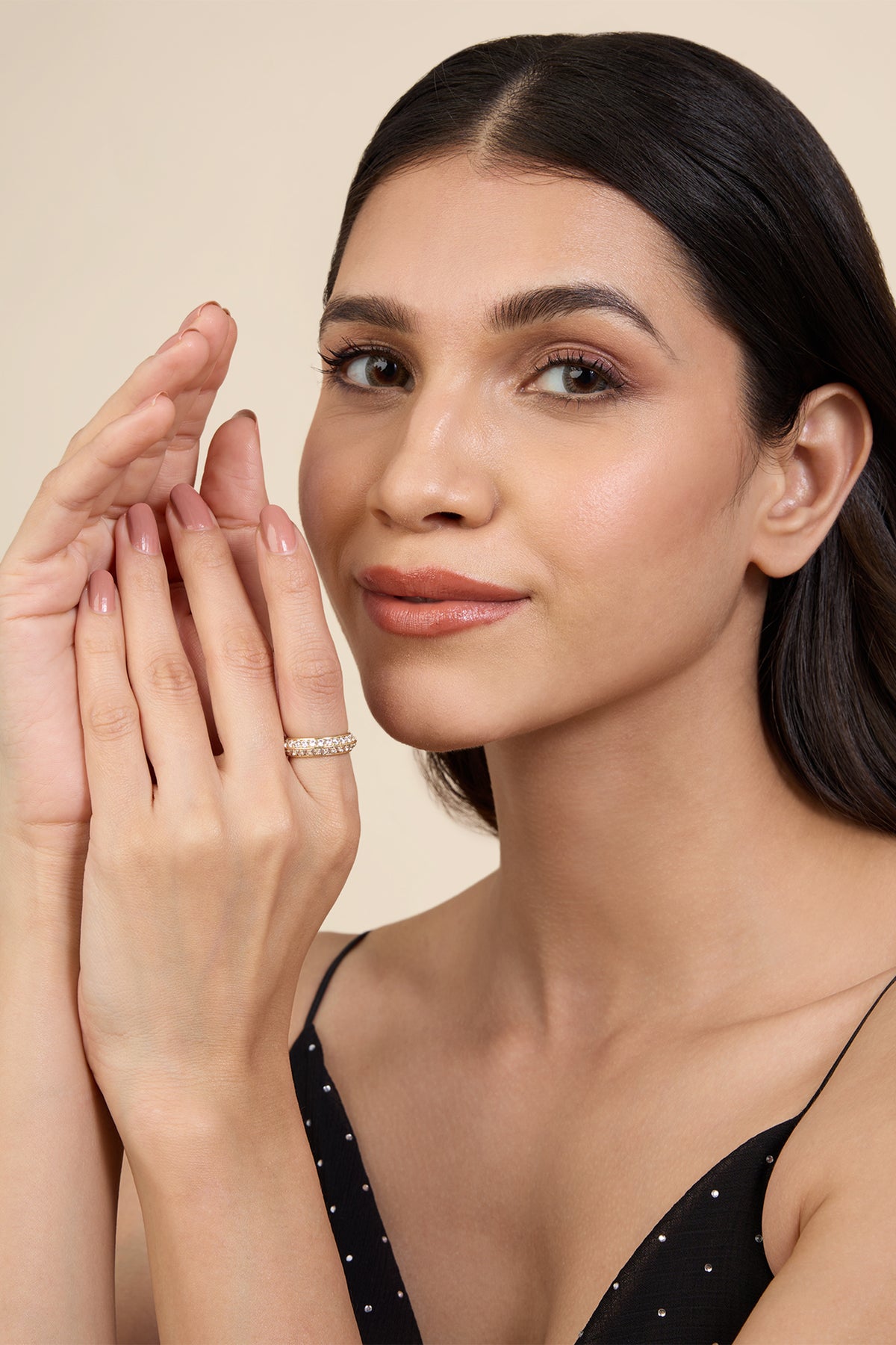 Illuminate your style with our disco lights ring. Crafted from high-quality cz with a vibrant yellow hue, this ring features a delicate band of gold plating with e-coating for a polished finish. The perfect addition to any jewelry collection, its dazzling design is sure to turn heads.