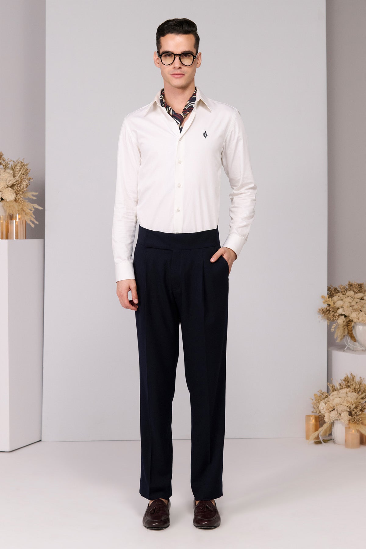 These high-waisted trousers are designed with a distinctive cross flap detail. Pair them with your favorite S and N piece to complete a polished fashion-forward look.