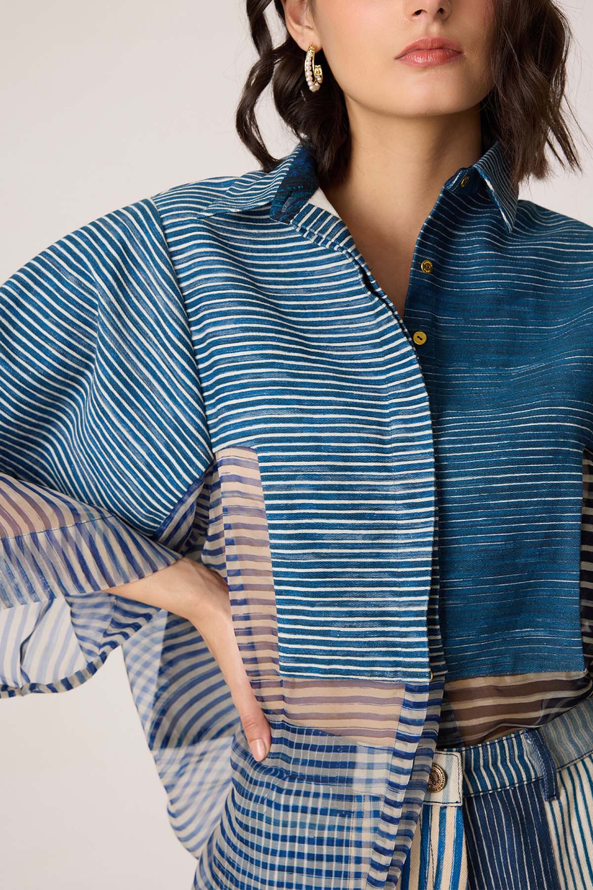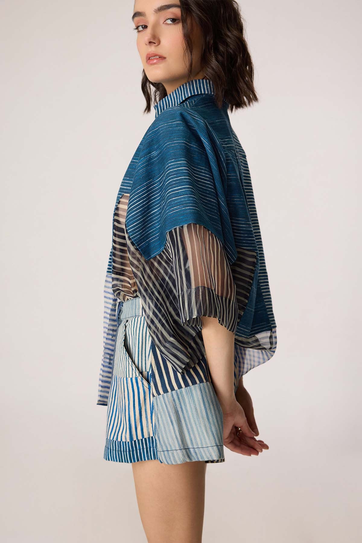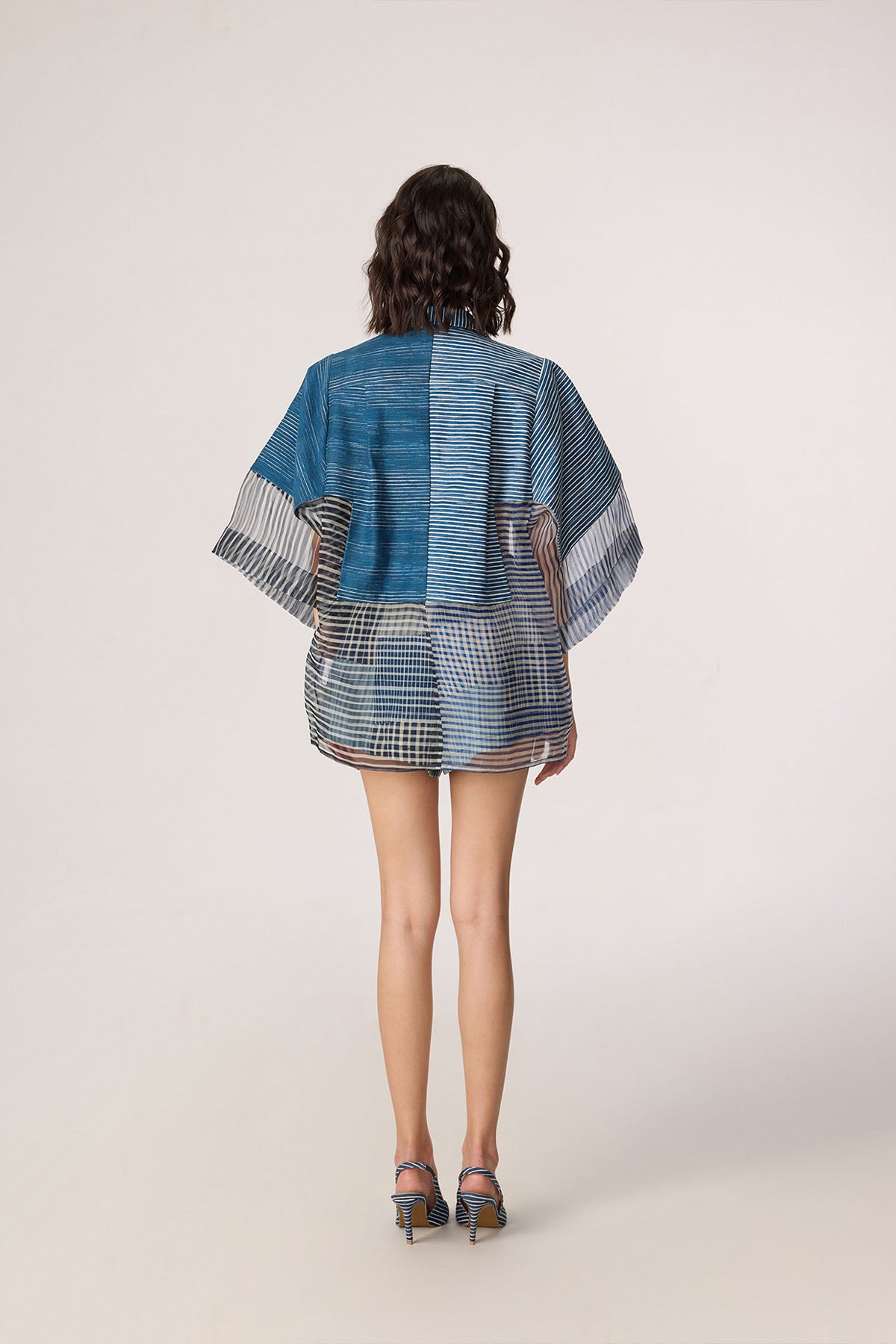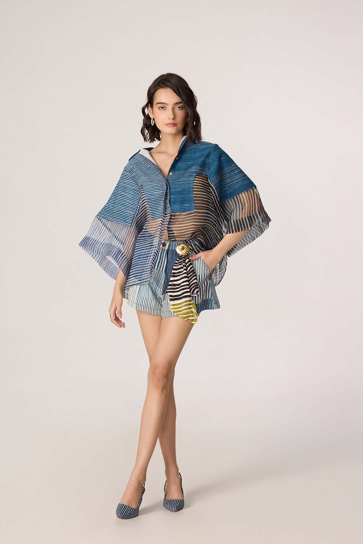 Dual stripe print batwing sheer shirt