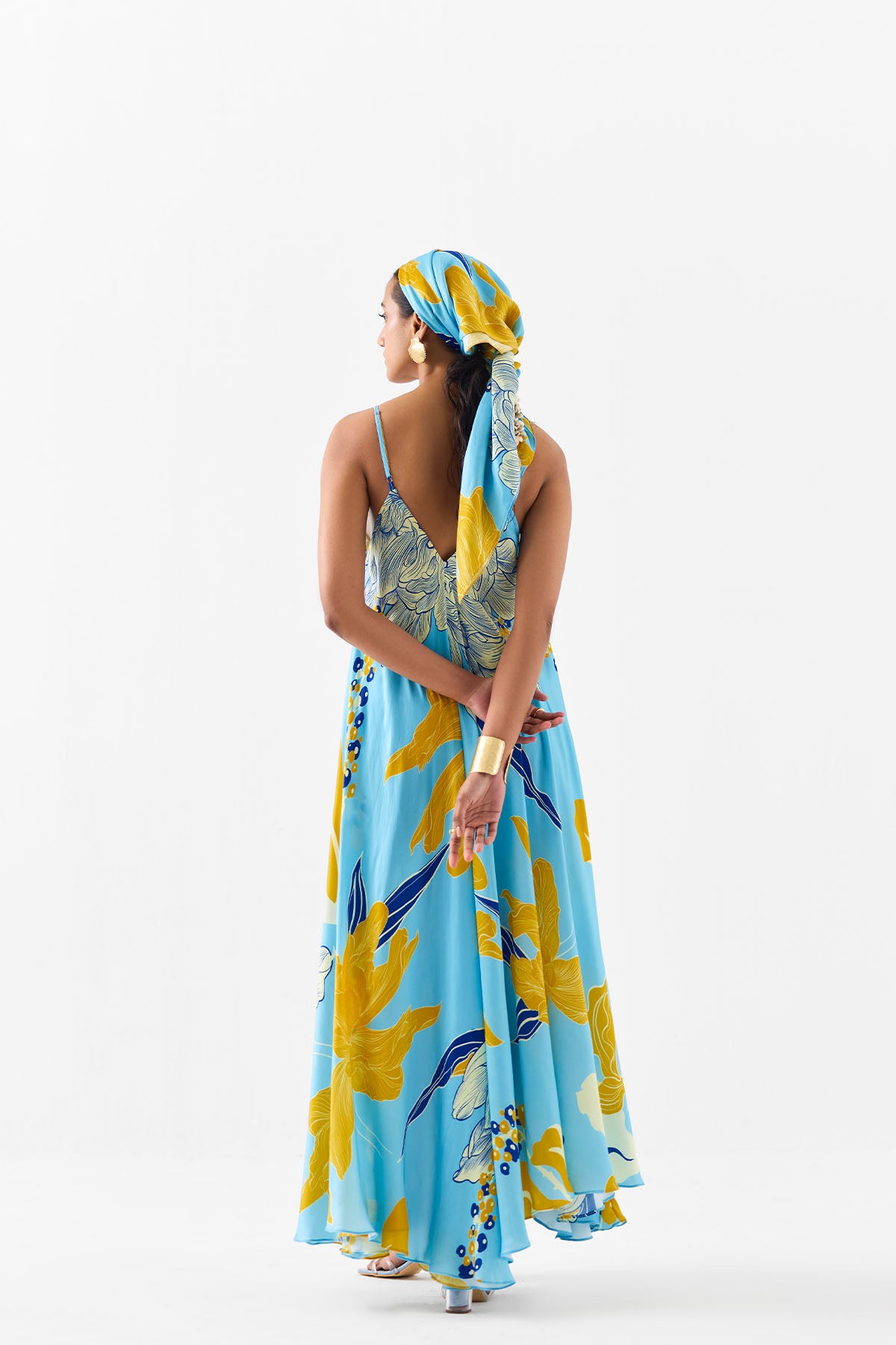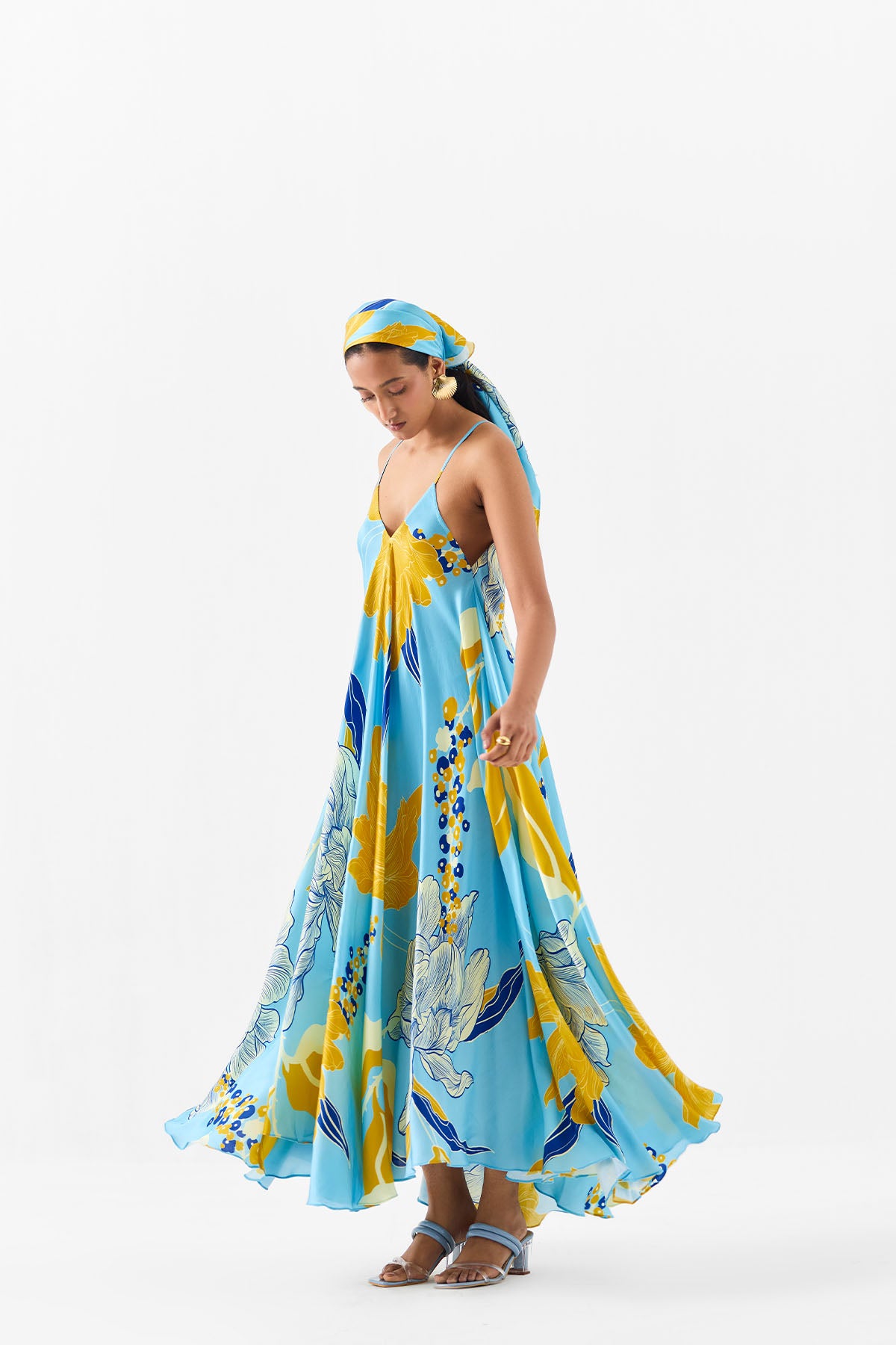 The white rose strappy dress crafted from our stunning vegan silk fabrication , trans-seasonal, is a statement piece. The dress, made in our digitally printed white rose print, has a relaxed fit with straps. Featuring a summery look, it is a-line and the straps are adjustable. Wear it with heels for an elegant look.