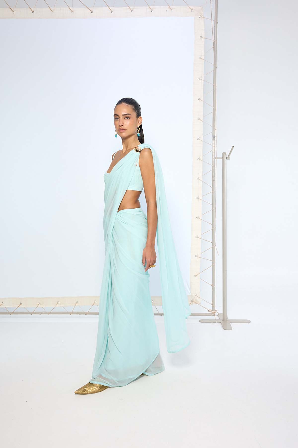 For palak shah, the saree is more than tradition—it is memory, identity, and love. This collection marks her first designer edit: a tribute to the looms of banaras and a bold vision for where the saree is destined to go. Our range of pure chiffon sarees is reimagined for ease and play. Designed with a movable gold hardware brooch on the shoulder, it not only keeps your pallu in place but also lets you experiment with different drapes—making the saree both functional and fun. Palak recommends: try styling the pallu looped once around the shoulder for a modern, effortless look, and pair it with statement earrings for a complete look.