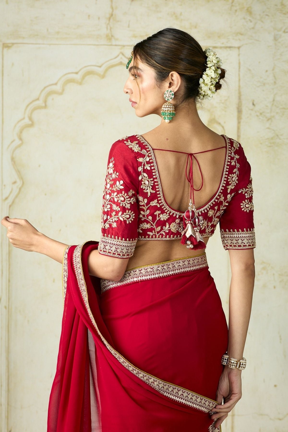 Fabric: Blouse-Tussar, Saree-Georgette/Tussar
