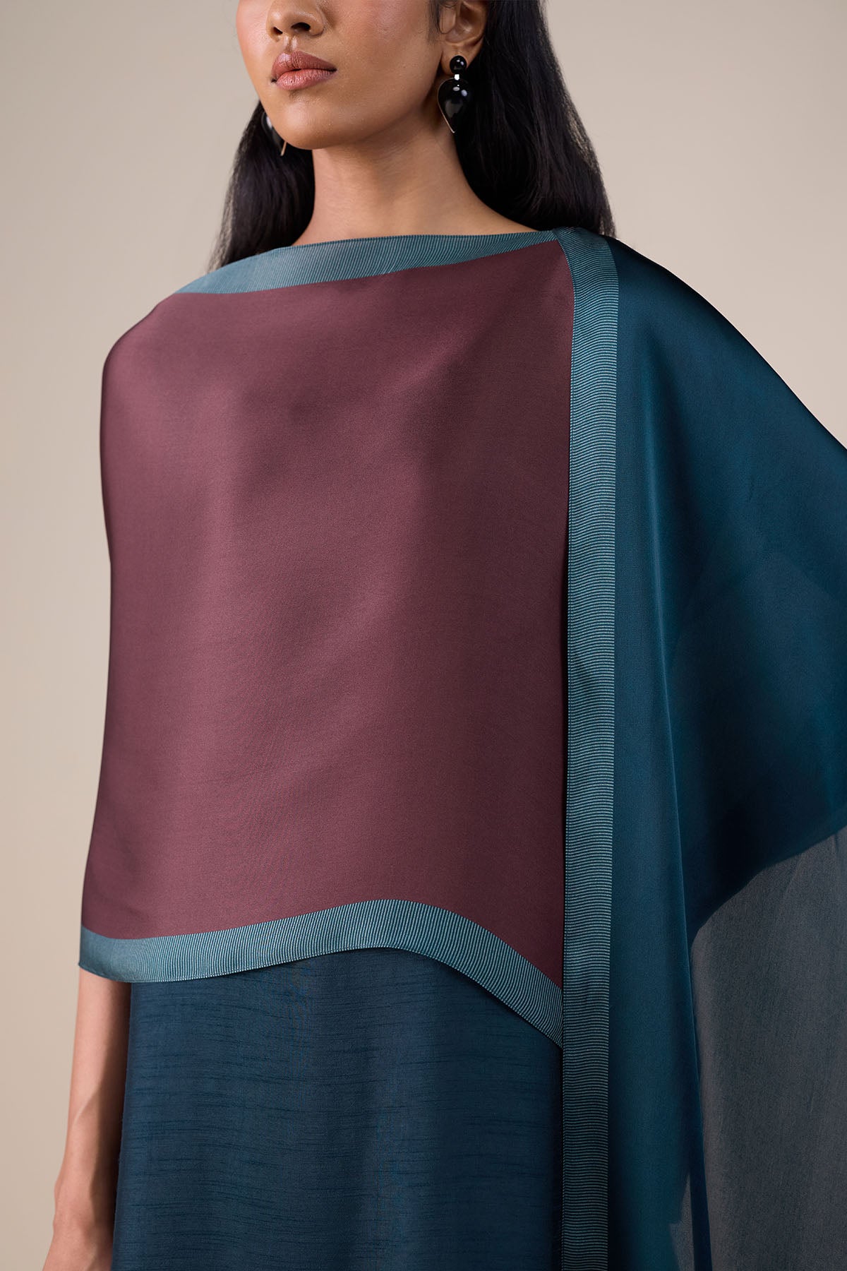 The izora scarf is simplicity at its finest in a dark blue hue, colour blocked in burnt red, its satin organza catching the light with a subtle sheen. It's the kind of piece that slips effortlessly into any part of your day, from a breezy brunch or an intimate evening gathering