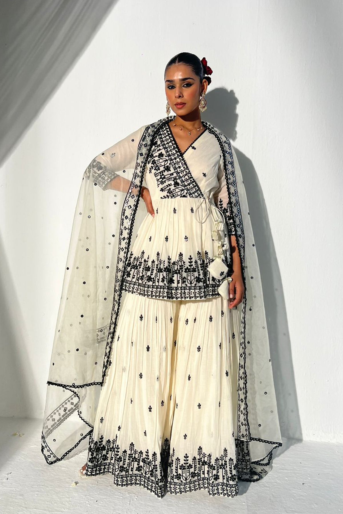 Preevin Black White Lotus Peplum Sharara indian designer wear online shopping melange singapore