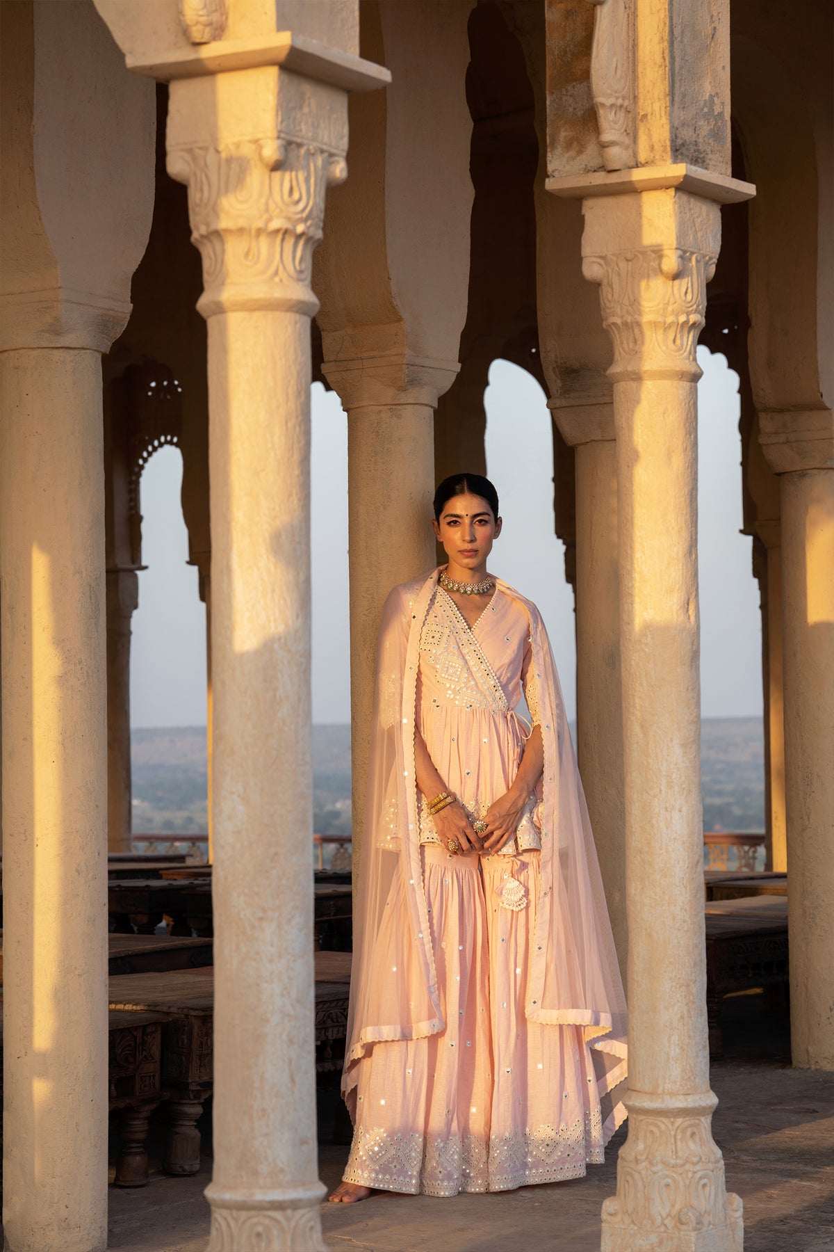 Blush pink diamond peplum sharara