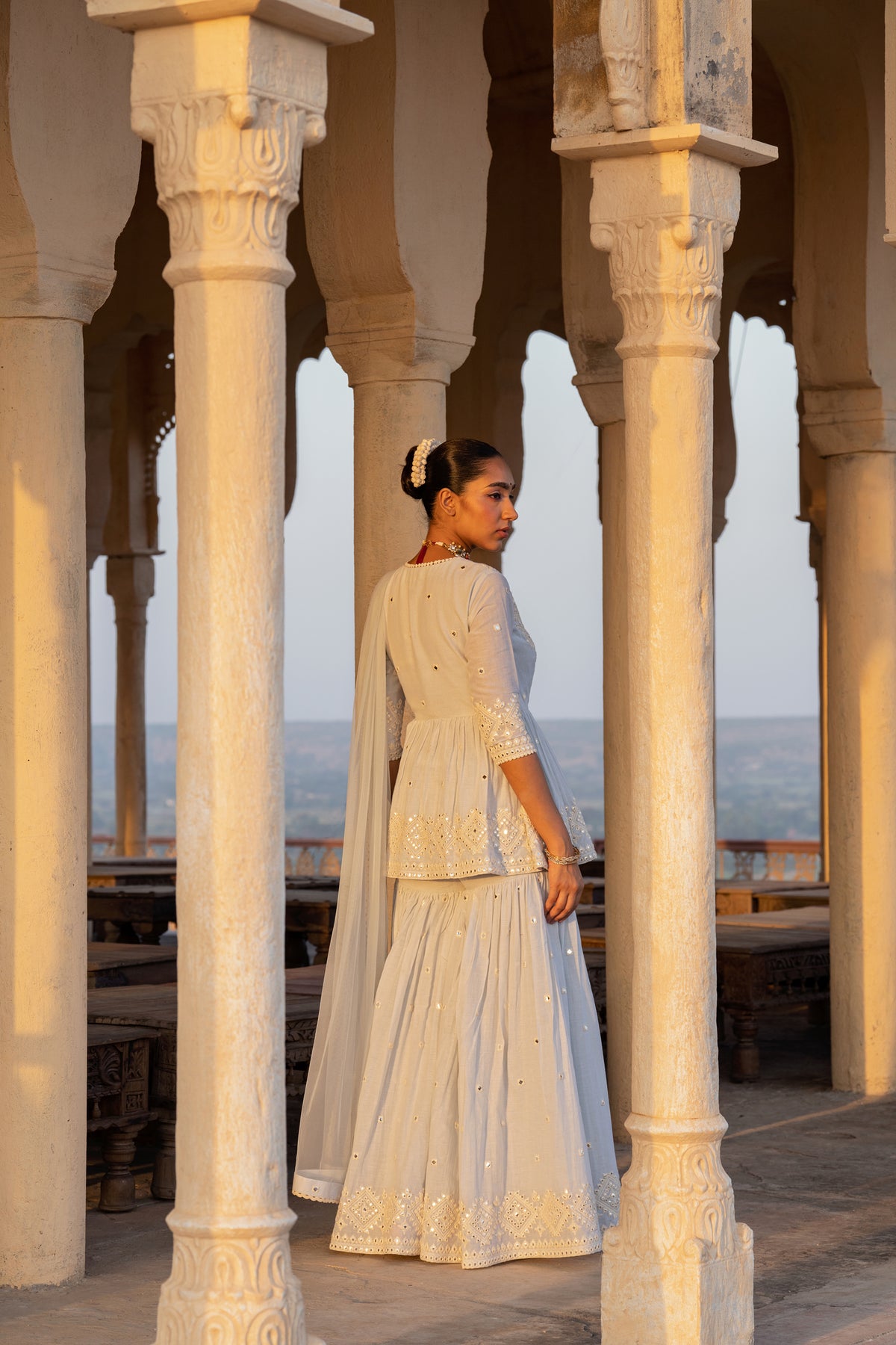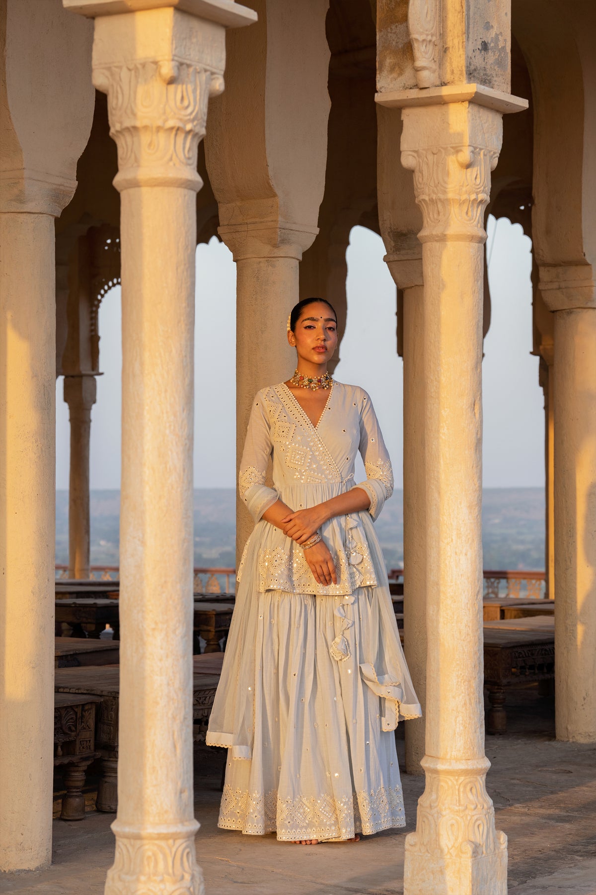 Preevin Ice Blue Diamond Peplum Sharara indian designer wear online shopping melange singapore