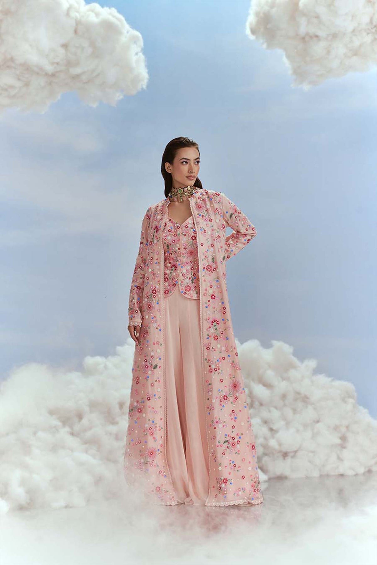 Fabric : Jacket - Organza With Tussar Lining; Top - Organza With Shantung Lining; Sharara - Georgette With Shantung Lining