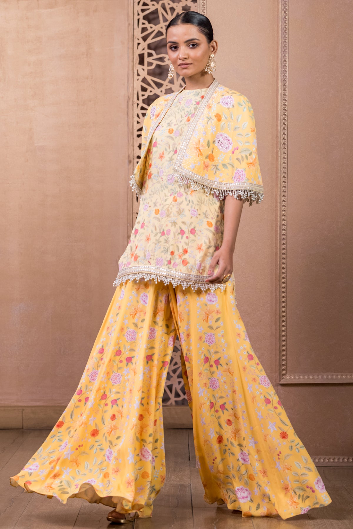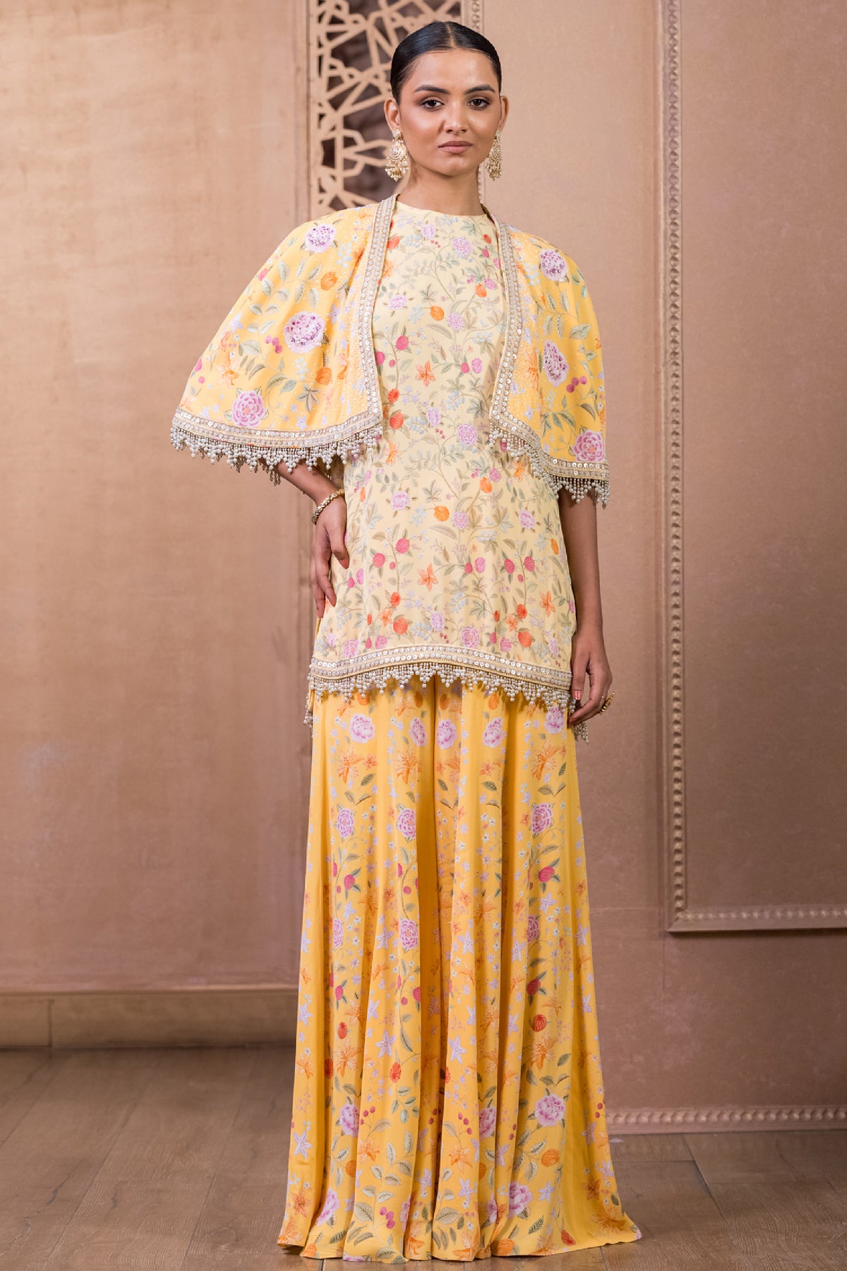 Tarun Tahiliani Kurti With Sharara And Cape Mango indian designer wear online shopping melange singapore