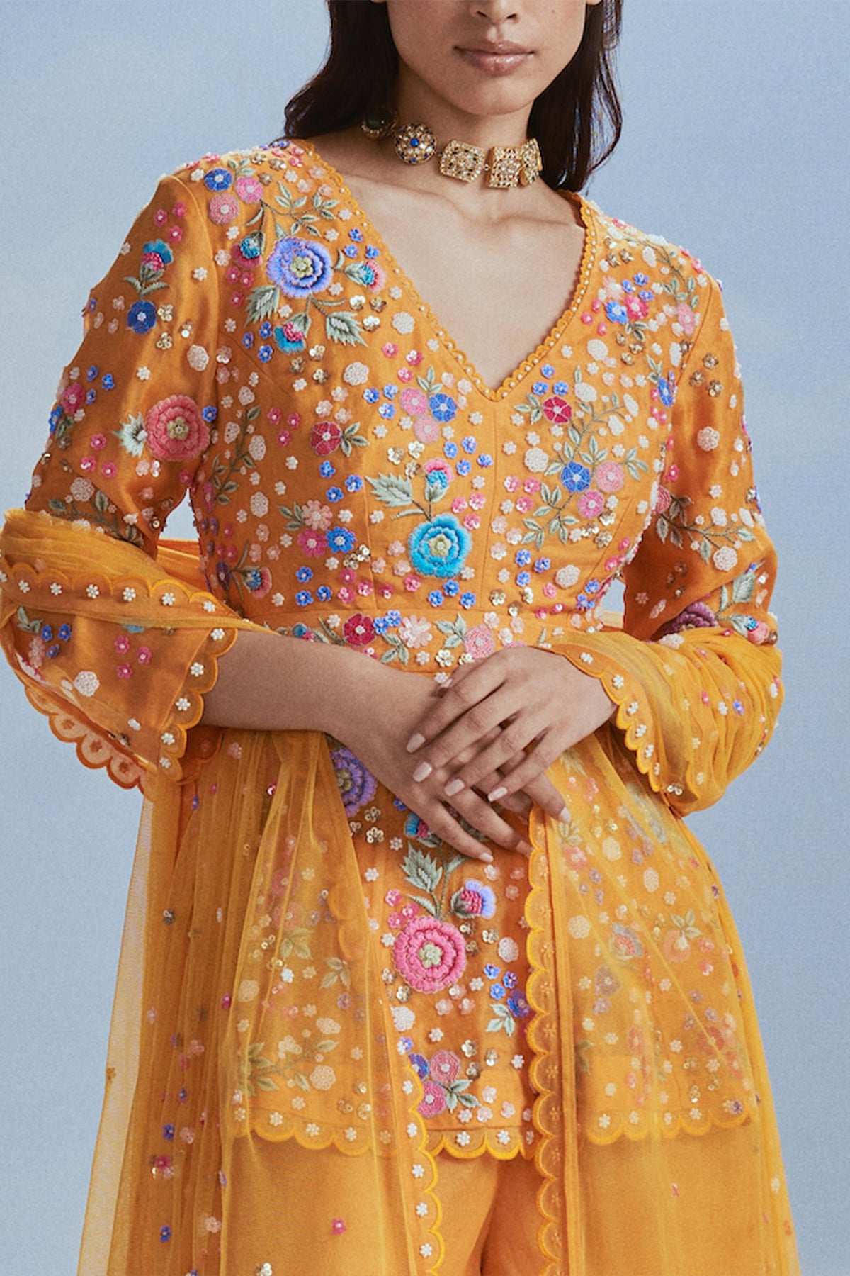 Fabric : Top - Organza; Sharara - Organza With Shantung Lining; Dupatta - Tulle