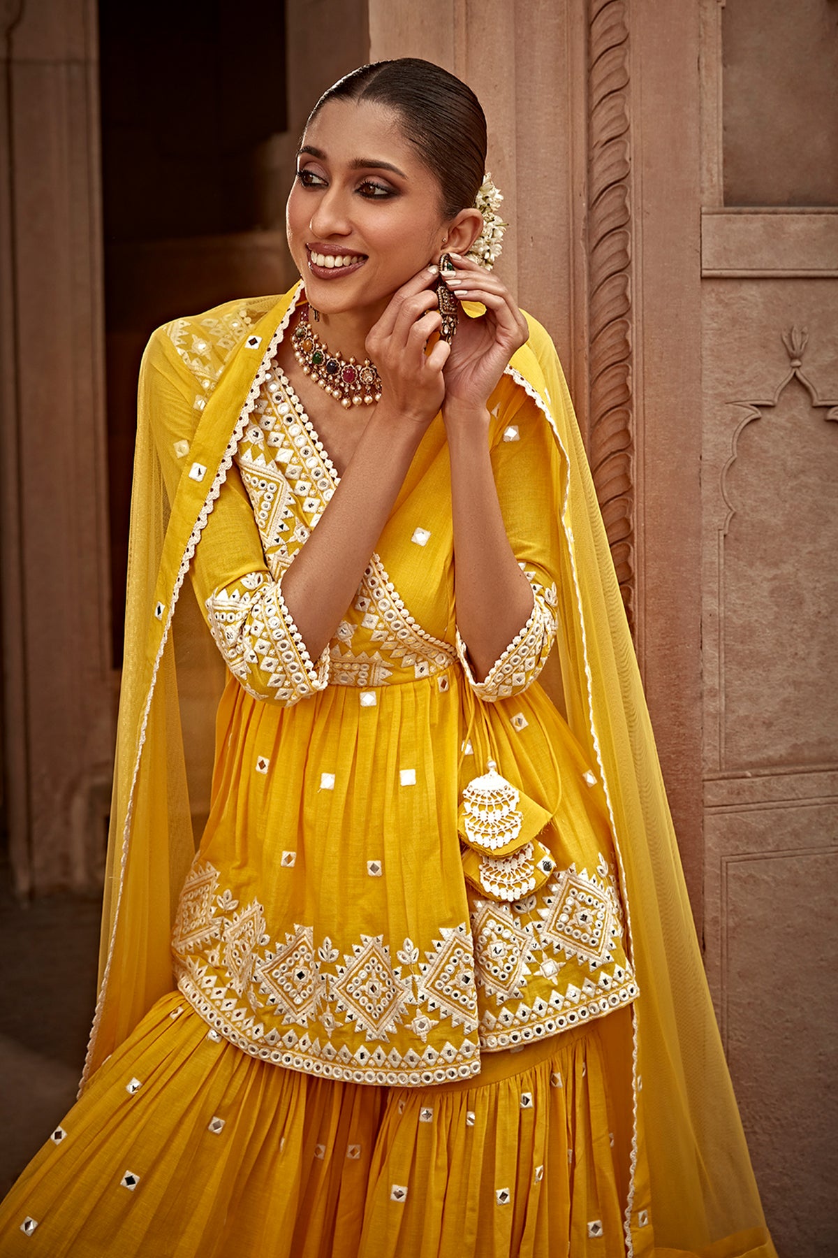 Preevin Yellow Diamond Peplum Sharara indian designer wear online shopping melange singapore
