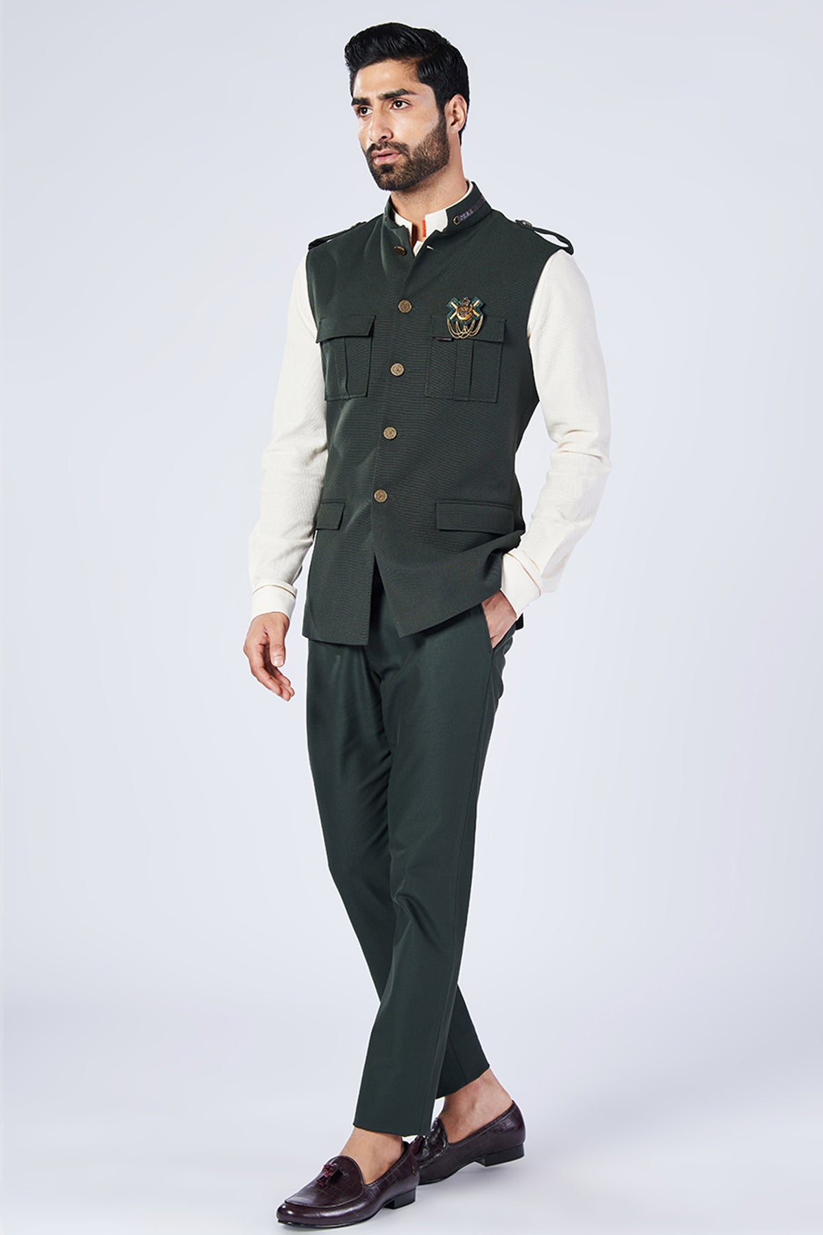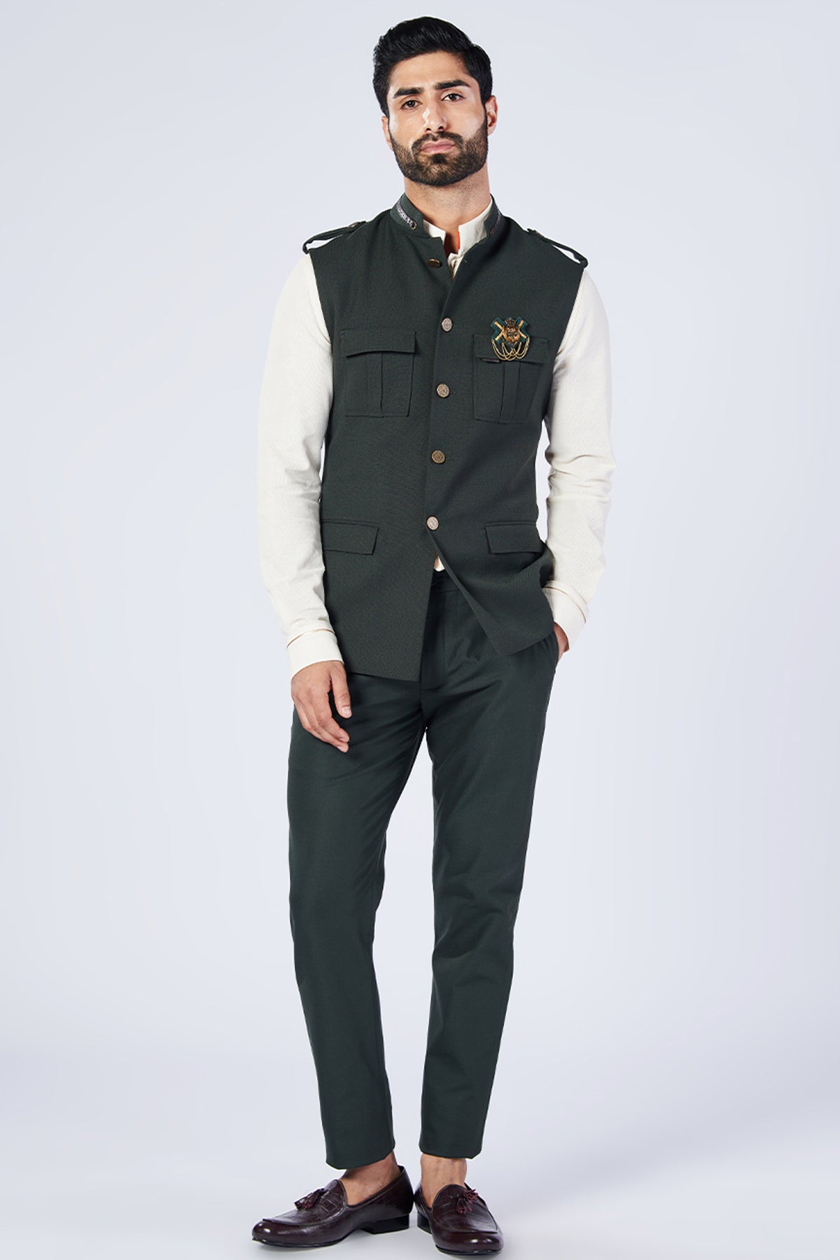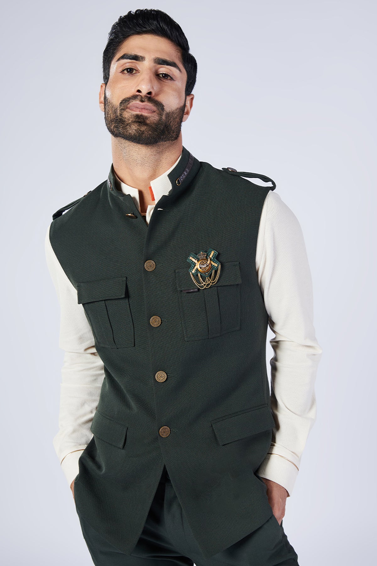 Shantanu & Nikhil Menswear Military Nehruvian Waistcoat designer wear online shopping melange singapore