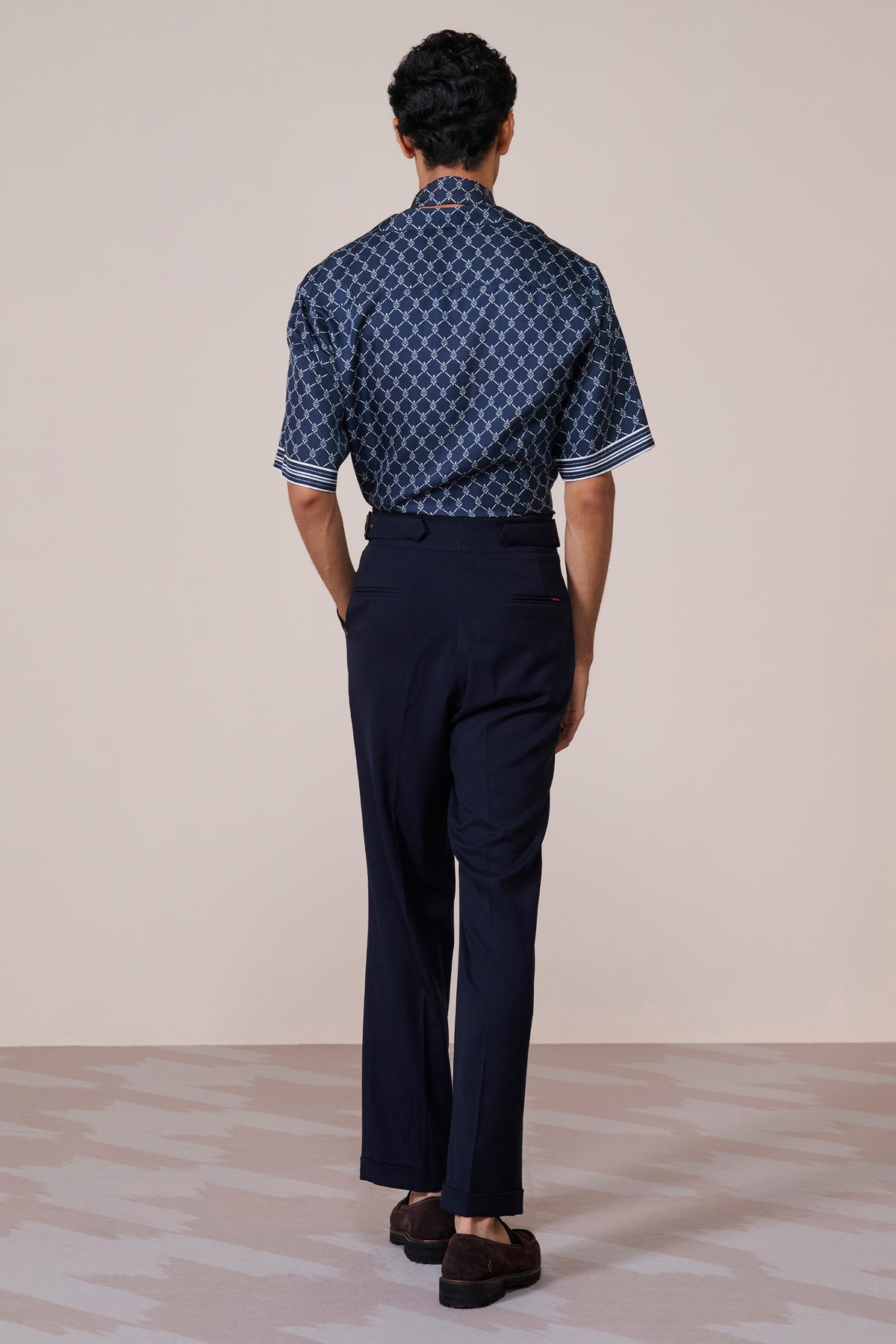 This printed shirt is meticulously tailored with unconventional design values. The shirt exudes SN vibes through its Adamas print and twill silk fabric. Pair it with SN Black Trouser for an effortless look.